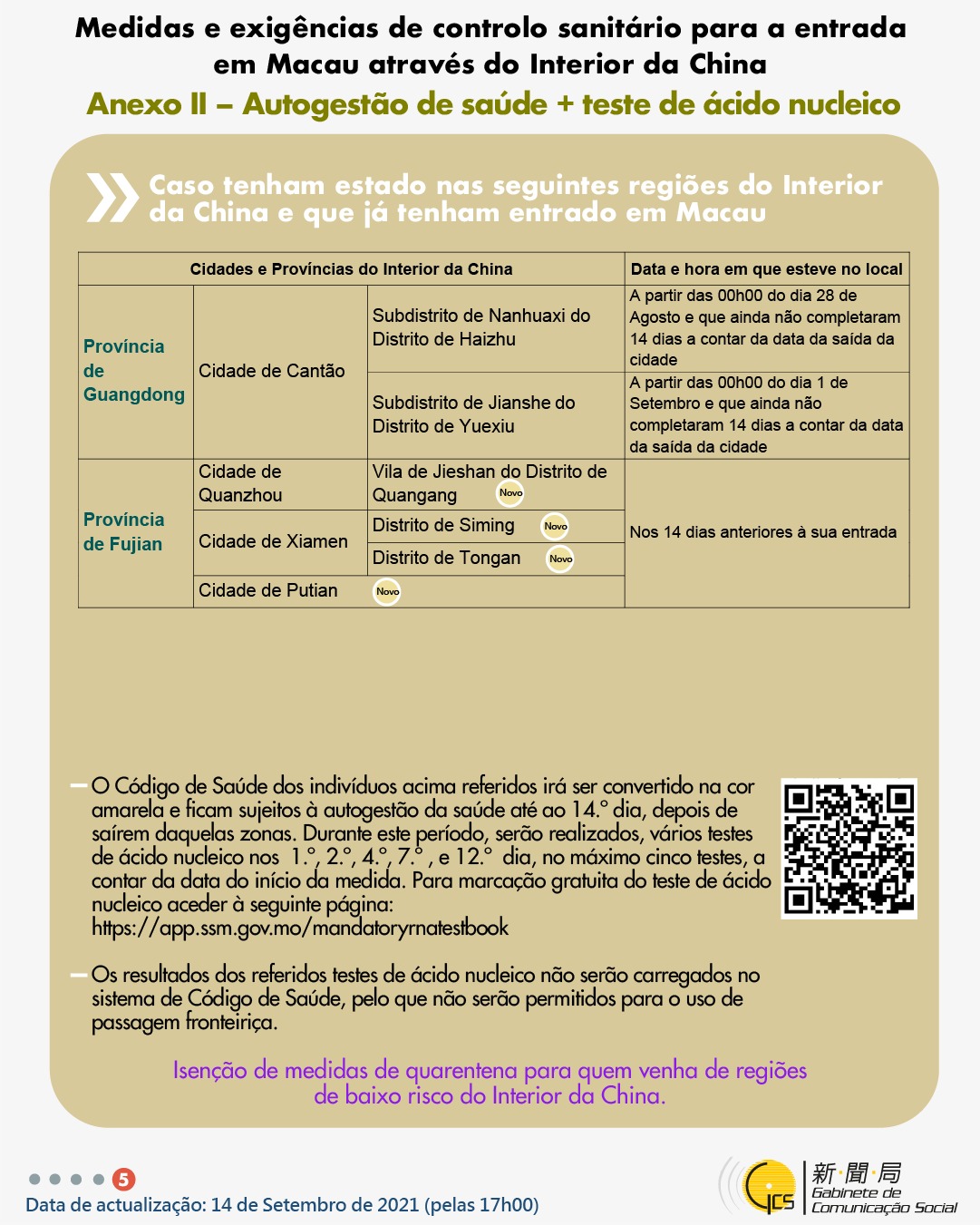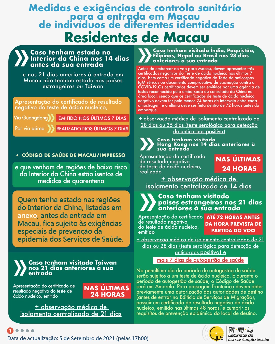 (Infografia)Medidas e exigências de controlo sanitário para a entrada em Macau de indivíduos de diferentes identidades, actualizadas no dia 14 de Setembro de 2021