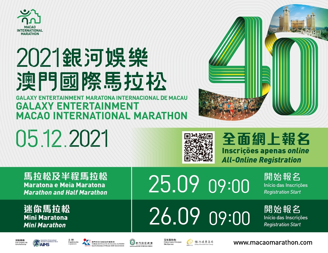 A “Galaxy Entertainment Maratona Internacional de Macau 2021”, organizada pelo Instituto do Desporto e Associação Geral de Atletismo de Macau, e com o título de patrocinador pelo Galaxy Entertainment Group, terá lugar no dia 5 de Dezembro.