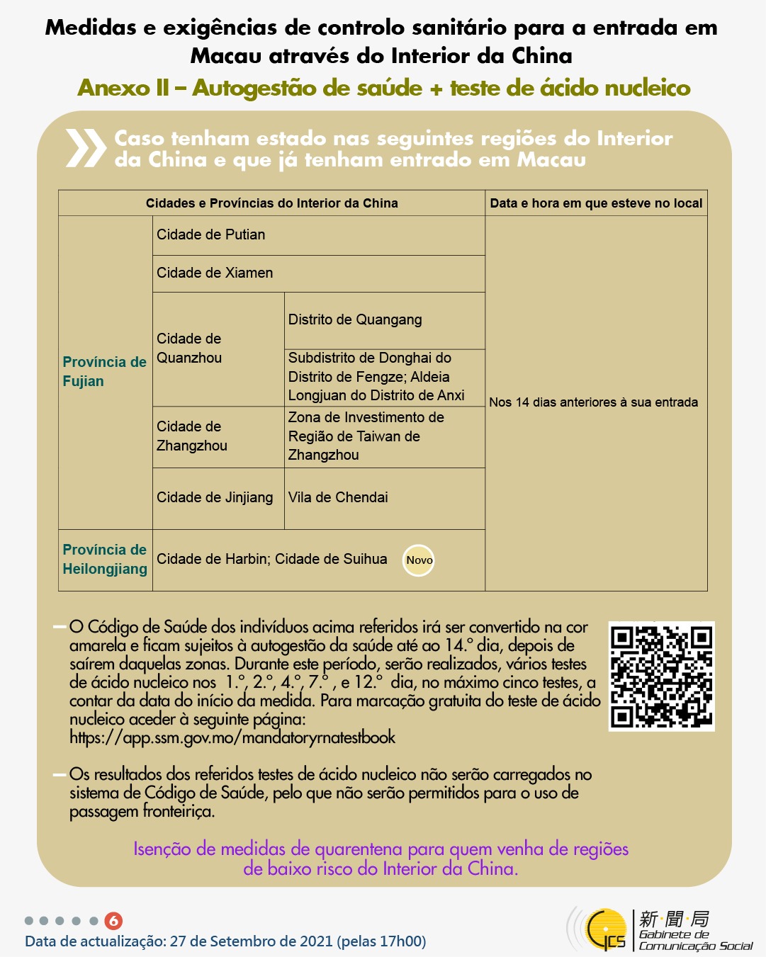 • Medidas mais recentes de entrada e saída de Macau - actualização de 3 de Outubro