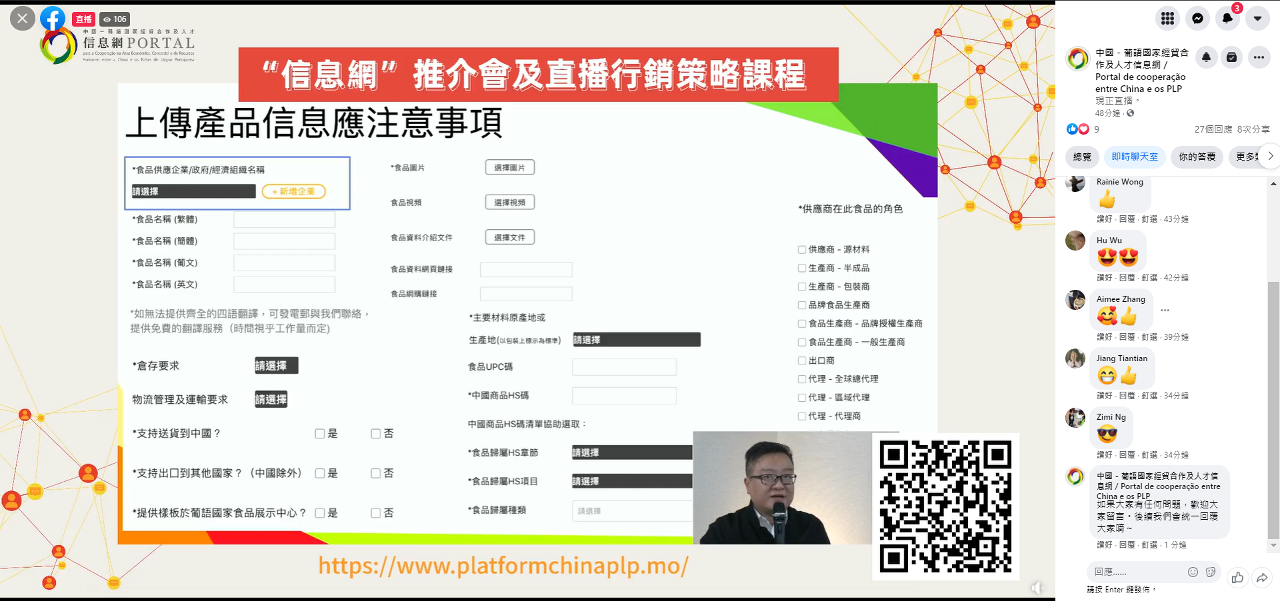 Por forma a acompanhar melhor as novas tendências de desenvolvimento no sector, ajudar os comerciantes a aproveitar bem as oportunidades do comércio electrónico e difundir o papel de Macau como plataforma sino-lusófona, o Portal para a Cooperação na Área Económica, Comercial e de Recursos Humanos entre a China e os Países de Língua Portuguesa (doravante designado por “Portal”) organizou, no passado dia 30 de Setembro, a “Sessão de Promoção para o Portal para a Cooperação na Área Económica, Comercial e de Recursos Humanos entre a China e os Países de Língua Portuguesa e Curso de Estratégia de Marketing em Directo”. Durante o evento, foram apresentadas aos participantes as novas funcionalidades do Portal e as formas oferecidas pelo mesmo através das quais os interessados podem explorar novas oportunidades de negócio. Além disso, a iniciativa ainda contou com a participação de várias celebridades digitais do Interior da China, que partilharam as suas estratégias de marketing em directo, tendo sido obtida uma assistência online de mais de 200 pessoas.