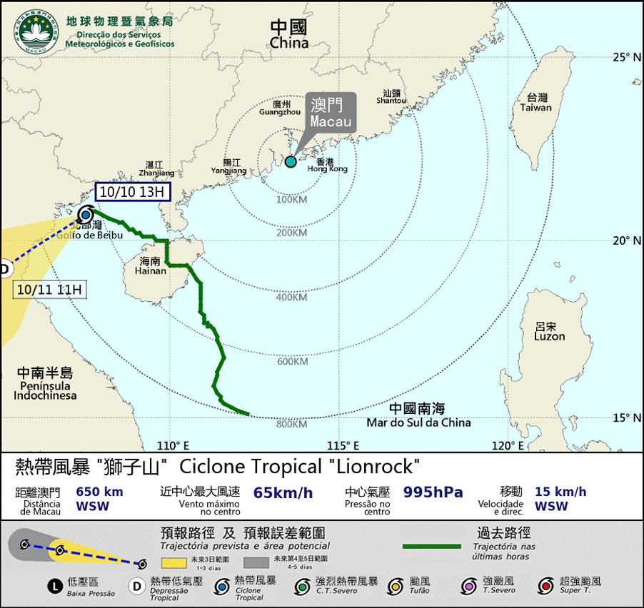 Obs: A previsão apresentada na tabela de probabilidade é uma situação que pode ocorrer nos próximos um ou dois dias. A população pode, deste modo, compreender a possibilidade e influência da tempestade tropical num determinado tempo em Macau e pode, preparar medidas preventivas necessárias, atempadamente. Aconselha-se à população que preste atenção às últimas informações divulgadas por esta direcção.
