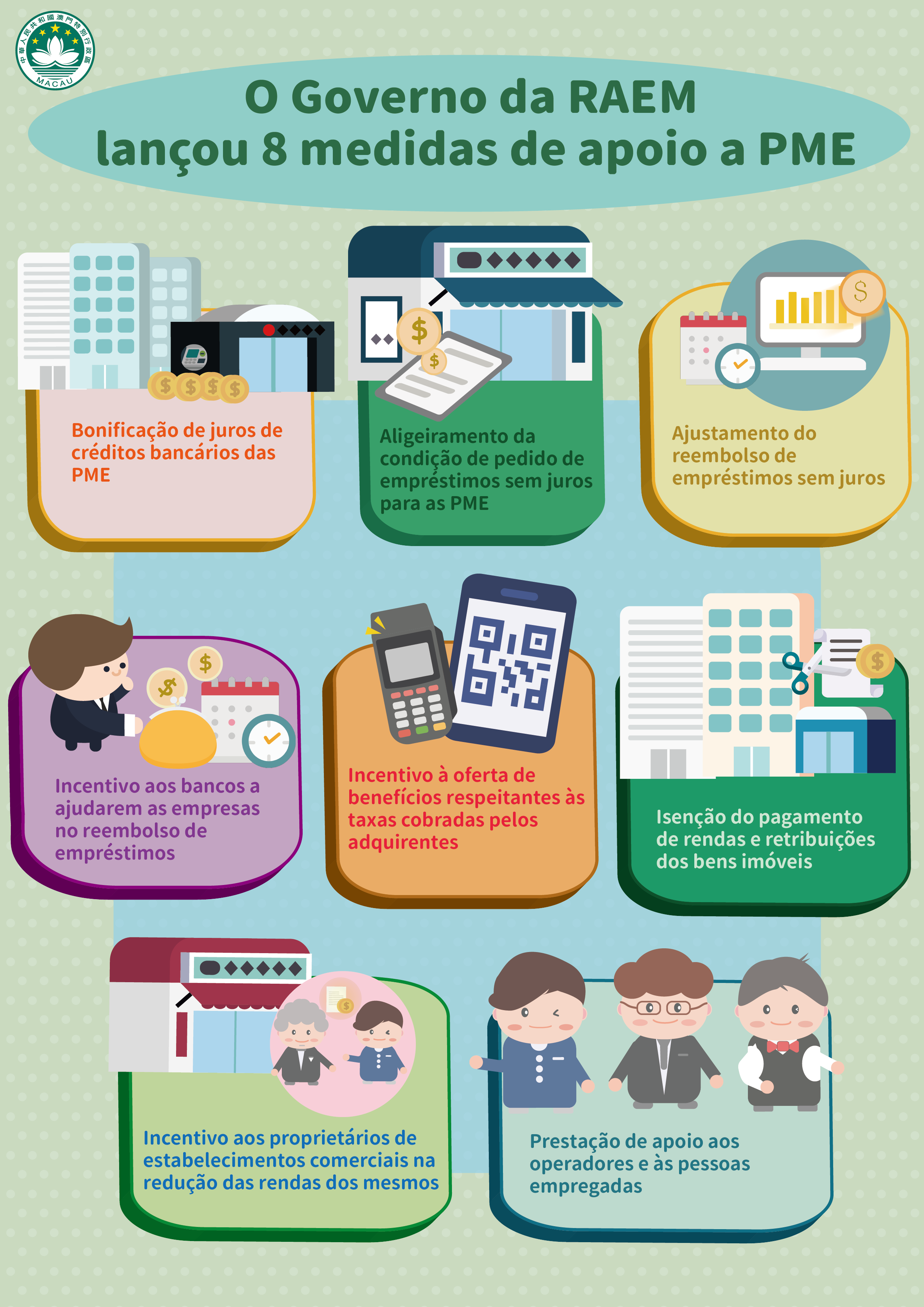 Devido à instabilidade da situação epidémica ocorrida recentemente em Macau que provocou um grande impacto na economia de Macau, a sociedade em geral espera que o Governo da RAEM proporcione apoio acertado às PME afectadas, procedendo atempadamente ao seu ajustamento através da análise cuidadosa da evolução epidemiológica e da flutuação económica a curto prazo, a fim de consolidar a confiança do mercado. O Governo da RAEM, após auscultadas as opiniões da sociedade e efectuado um estudo abrangente, e mediante uma estratégia de gestão dinâmica, lançou 8 medidas de apoio a PME em resposta à epidemia, com vista a aliviar a pressão operacional das mesmas e as dificuldades dos trabalhadores.