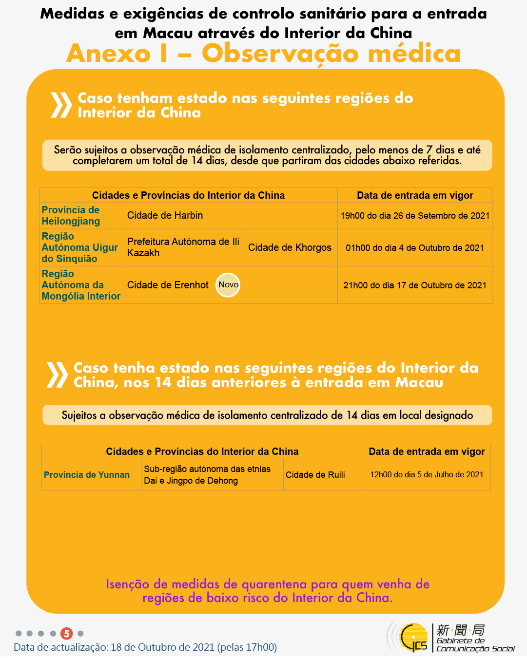 (Infografia)Medidas e exigências de controlo sanitário para a entrada em Macau de indivíduos de diferentes identidades, actualizadas no dia 18 de Outubro de 2021