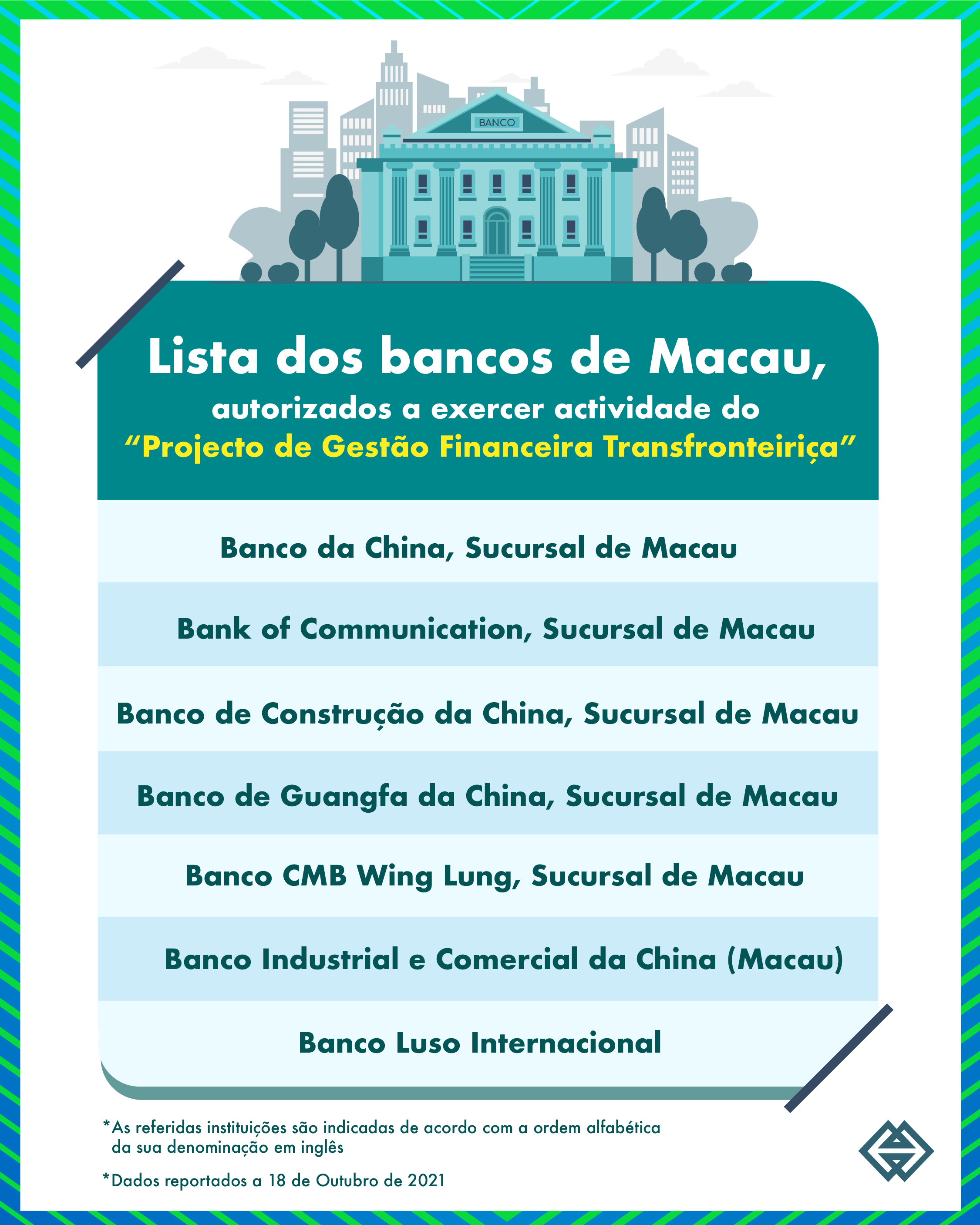 Com o propósito de coadunar o início das actividades no âmbito do Projecto-piloto denominado por “Gestão Financeira Transfronteiriça”, a AMCM publicou no mês transacto a «Regulamentação sobre o desenvolvimento na Grande Baía Guangdong-Hong Kong-Macau, de actividades no âmbito do Projecto-piloto denominado por “Gestão Financeira Transfronteiriça», tendo estabelecido de forma expressa os requisitos de supervisão das respectivas actividades a desenvolver pelos bancos. Após a finalização da formalidade de notificação em conformidade com as exigências constantes na regulamentação supramencionada, os bancos podem iniciar as actividades do “Projecto de Gestão Financeira Transfronteiriça”. Até ao presente, 7 bancos de Macau concluíram a formalidade de notificação junto da AMCM, encontrando-se preparados para iniciar as actividades em causa.