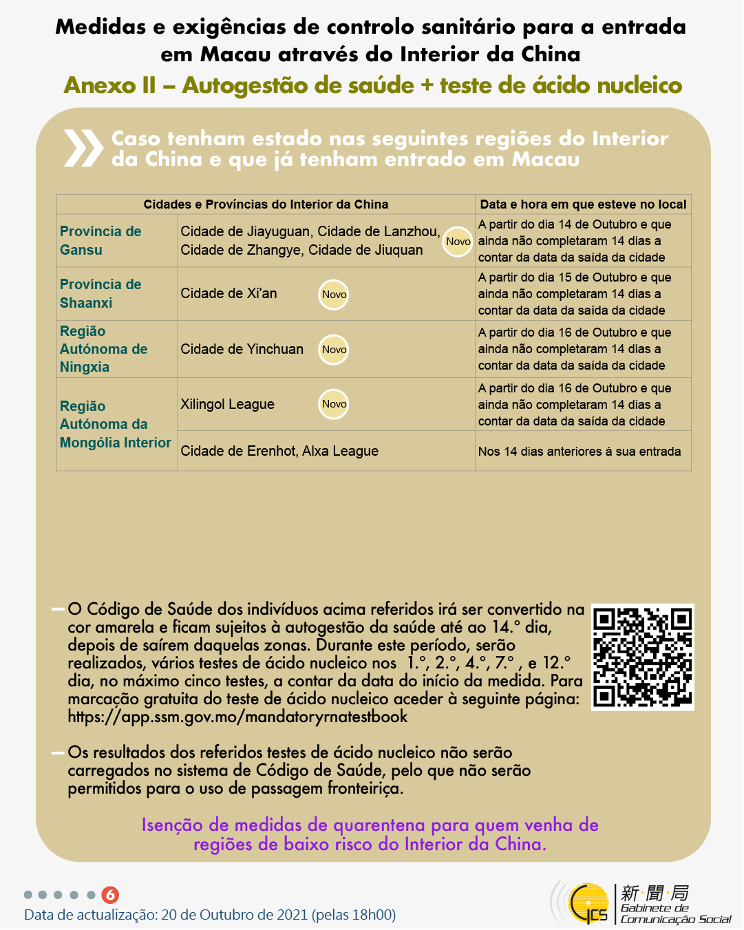 (Infografia)Medidas e exigências de controlo sanitário para a entrada em Macau de indivíduos de diferentes identidades, actualizadas no dia 20 de Outubro de 2021