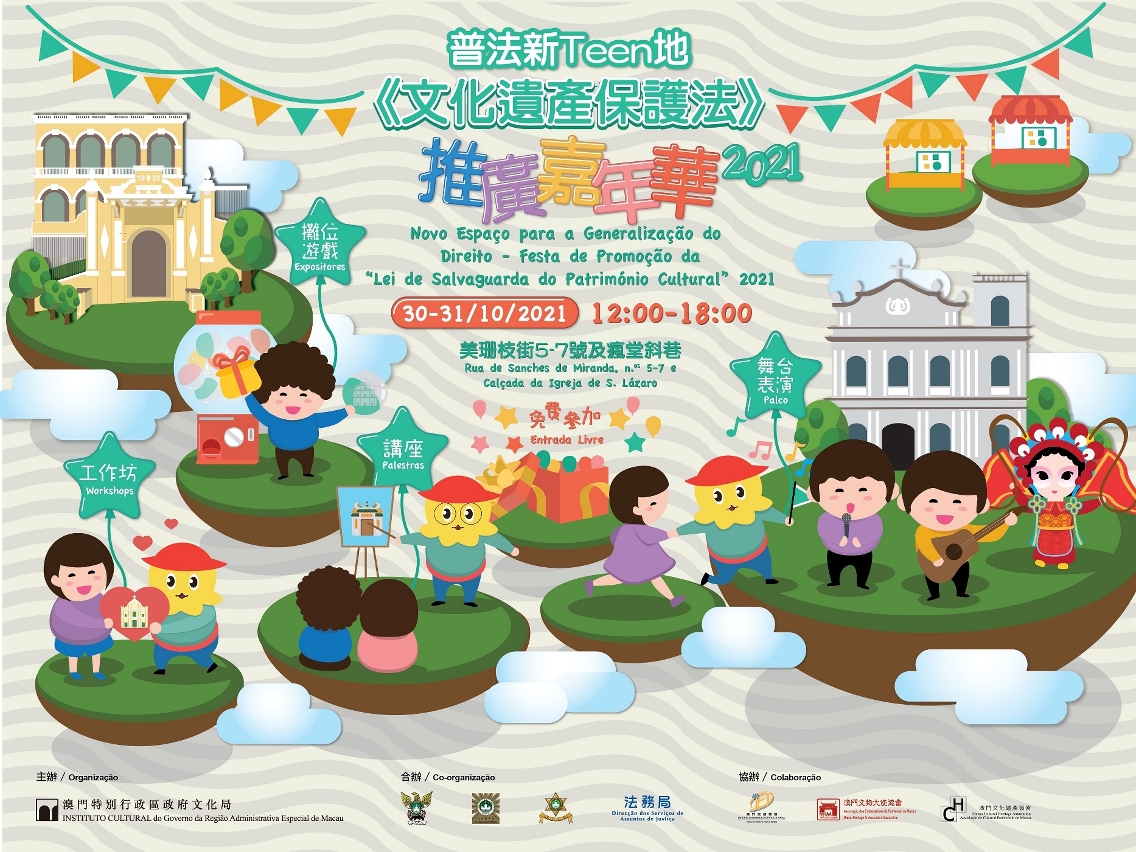 Com o objectivo de promover as actividades do mês da divulgação jurídica destinada a jovens no âmbito da iniciativa “Novo Espaço para a Generalização do Direito 2021”, organizado por vários serviços do Governo, e de aprofundar os conhecimentos da população sobre a “Lei de Salvaguarda do Património Cultural” e sobre o património cultural de Macau, o Instituto Cultural (IC) irá organizar a Festa de Promoção da “Lei de Salvaguarda do Património Cultural” 2021, nos dias 30 e 31 de Outubro, das 12:00 às 18:00 horas, no espaço em frente ao edifício sito nos n.os 5–7 da Rua de Sanches de Miranda e Calçada da Igreja de S. Lázaro. No local haverá actuações em palco, expositores e workshops. A entrada é livre, sendo o público convidado a participar. O Instituto Cultural seguirá estritamente as directrizes anti-epidémicas emitidas pelos Serviços de Saúde e implementará as medidas apropriadas para as referidas actividades.