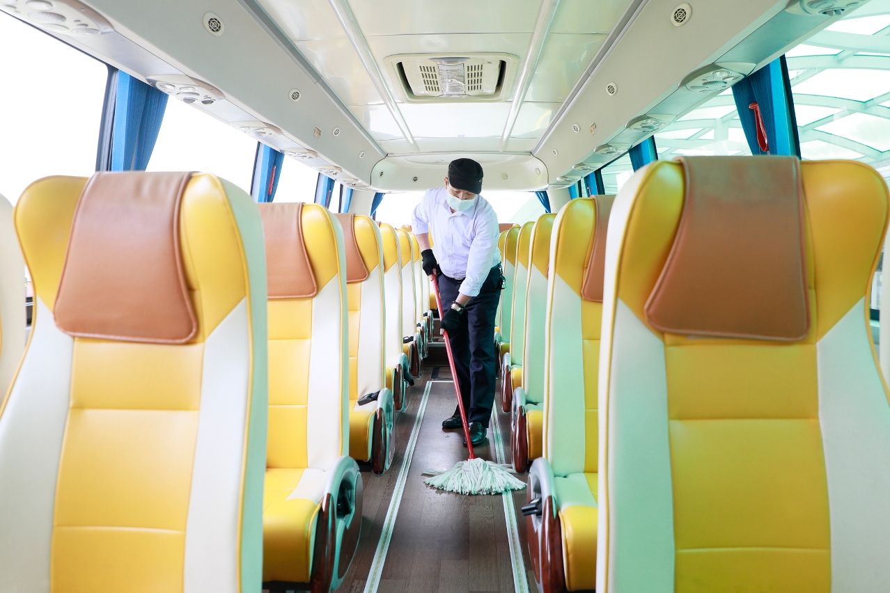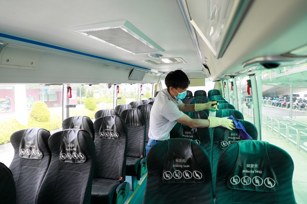 Além de limpar periodicamente o interior e exterior dos autocarros, trabalhadores também fizeram uma desinfecção total do interior dos autocarros de acordo com as orientações relacionadas, a fim de garantir que os passageiros possam utilizar o veículo com segurança e conforto. Por outro lado, tendo em conta os requisitos das medidas de prevenção da pandemia, as embarcações de recreio também alocaram pessoal para reforçar a limpeza e desinfecção das instalações dentro das cabines.