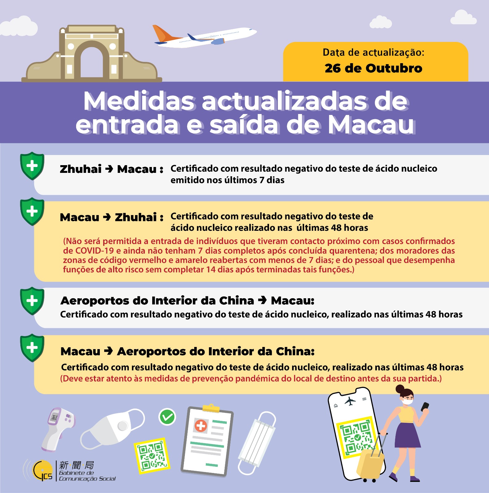 (Infografia) Medidas actualizadas de entrada e saída de Macau no dia 26 de Outubro de 2021