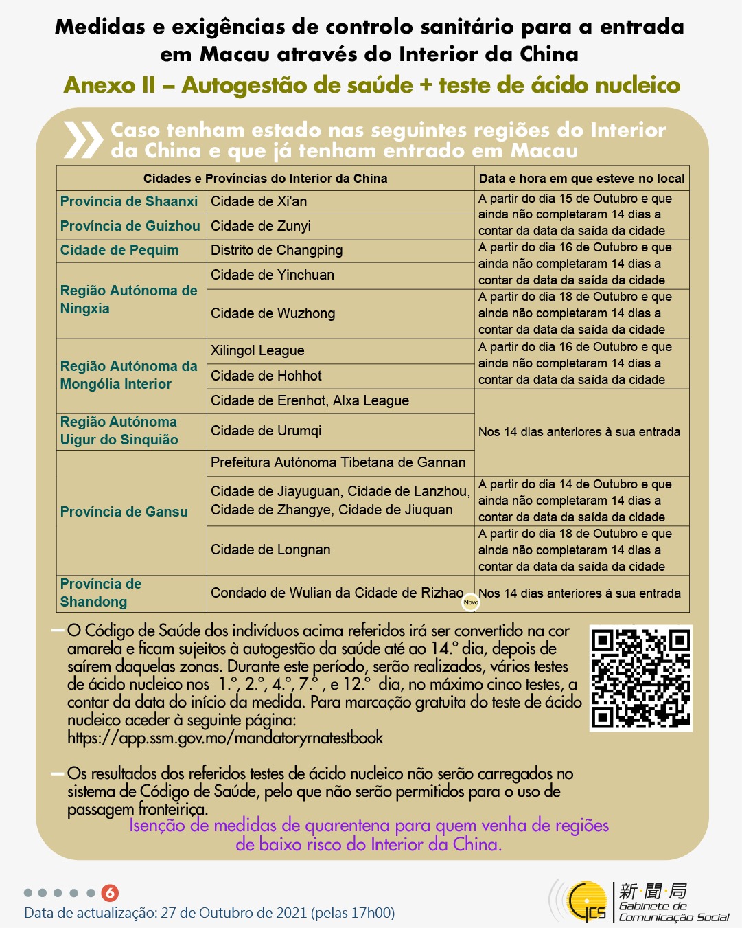 (Infografia)Medidas e exigências de controlo sanitário para a entrada em Macau de indivíduos de diferentes identidades, actualizadas no dia 27 de Outubro de 2021