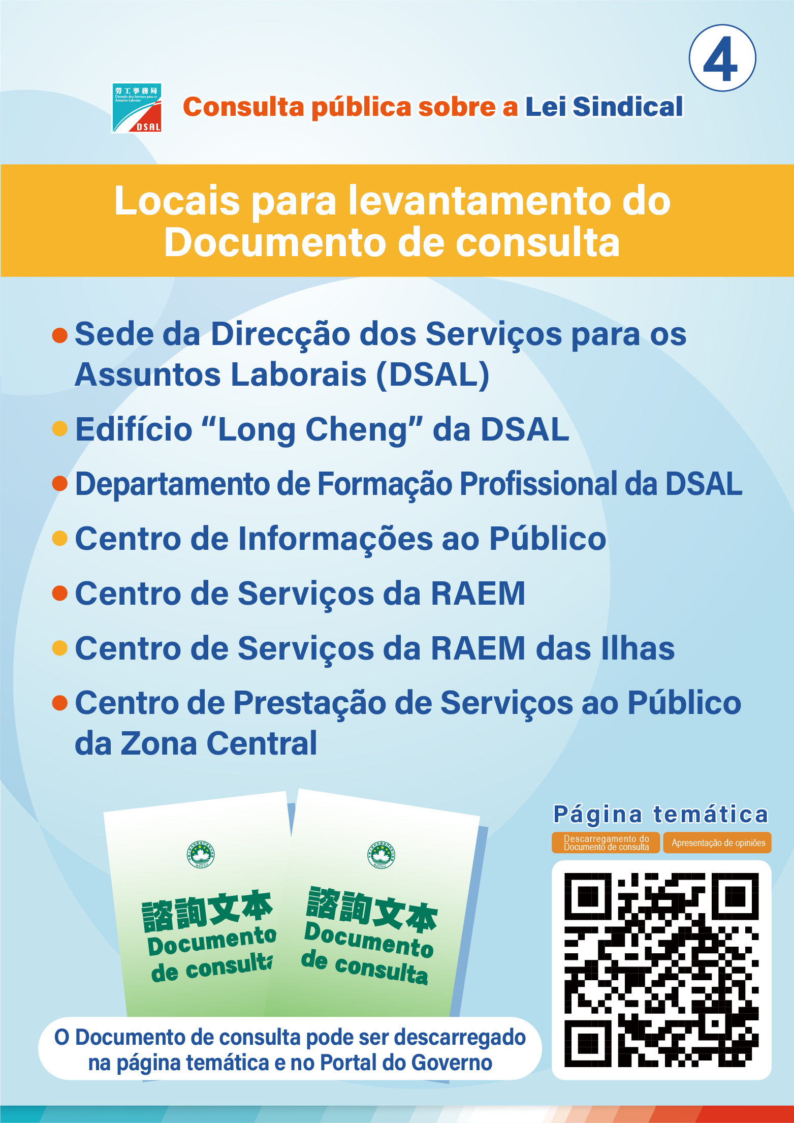 O Documento de consulta da “Lei Sindical” foi carregado na página temática da Direcção dos Serviços para os Assuntos Laborais (DSAL).