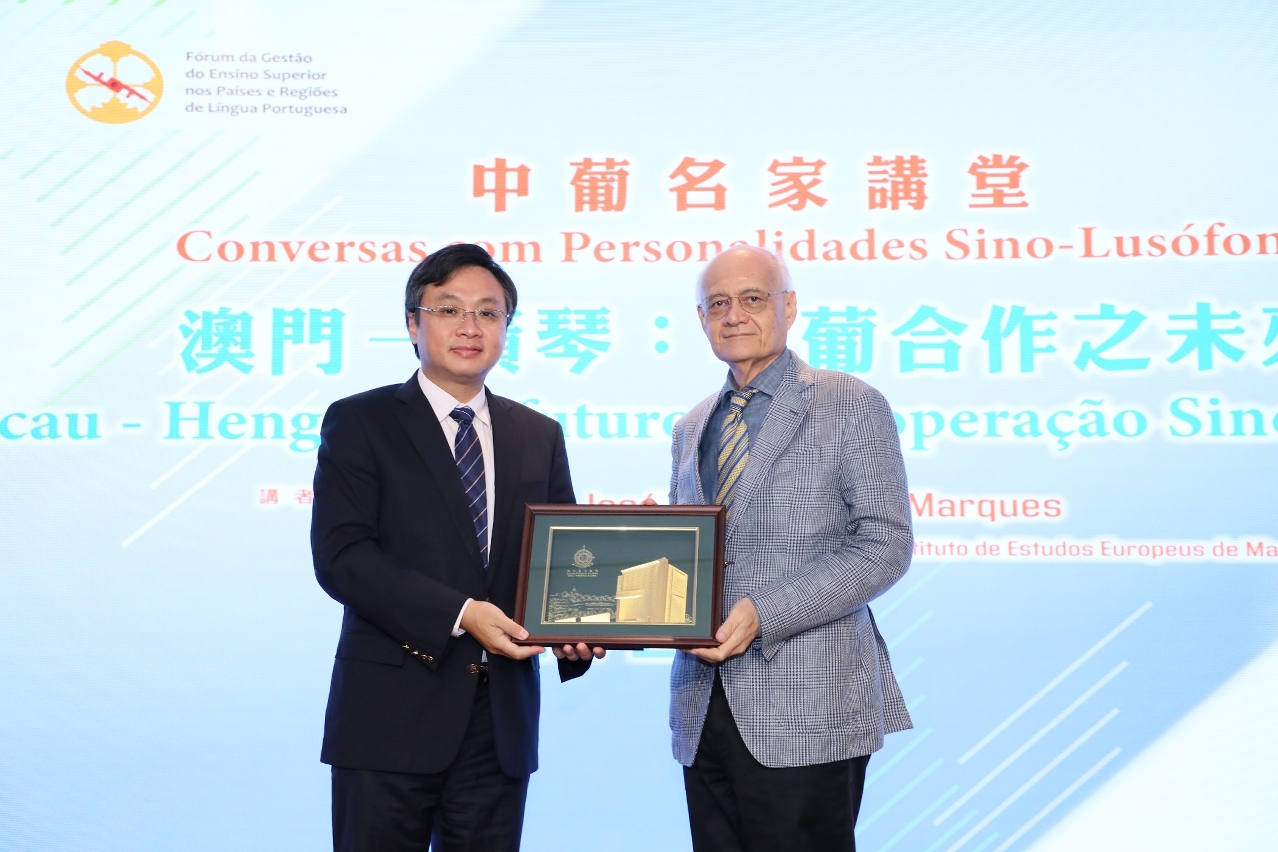 Com vista a discutir o futuro rumo de desenvolvimento da cooperação entre a China e os países e regiões de língua portuguesa no contexto da construção da “Zona de Cooperação Aprofundada entre Guangdong e Macau em Hengqin”, o Instituto Politécnico de Macau (IPM) organizou, no passado dia 3 de Novembro, a palestra académica “Macau - Hengqin: o futuro da cooperação Sino-Lusófona”. A palestra, proferida pelo Presidente do Instituto de Estudos Europeus de Macau (IEEM), Dr. José Luís de Sales Marques, tem como objectivo abordar as novas oportunidades que Macau está a enfrentar na construção da zona de cooperação aprofundada, bem como prever as futuras cooperações entre a China e os países e regiões de língua portuguesa. Integrada como a segunda sessão das “Conversas com Personalidades Sino-Lusófonas” lançadas pelo IPM, a palestra foi moderada pelo Prof. Doutor Joaquim Ramos de Carvalho, Coordenador do Centro Internacional Português de Formação do IPM, e contou com a participação de diversos professores e alunos, de dentro e de fora do IPM, bem como de académicos sino-lusófonos e profissionais de áreas relacionadas.