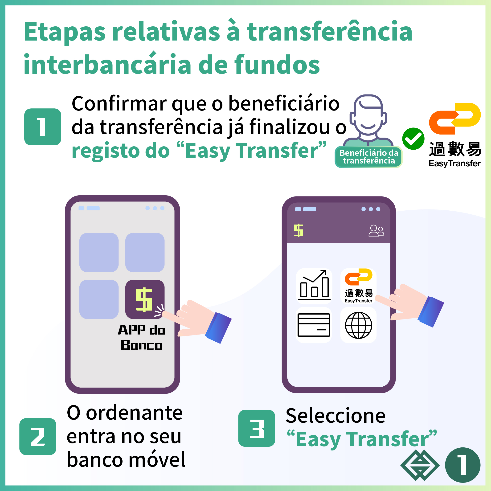 Os serviços de transferência interbancária rápida de fundos de pequenos valores denominados por  “Easy Transfer” contaram com a participação de 31 bancos de Macau, entre os quais, 11 bancos facultam serviços de transferência interbancária em tempo real.  Nas situações em que os residentes e as empresas pretendam utilizar os serviços de transferência em tempo real denominados por “Easy Transfer”, devem efectuar o registo junto dos bancos, podendo optar por vincular, com o número de telemóvel, a conta bancária de Macau em patacas para  receber fundos, ou solicitar o código de “FPS ID” junto dos bancos.  O registo pode ser efectuado por  banco “on-line”, “e-banking” e balcões dos bancos, sendo que as informações detalhadas podem ser consultadas junto dos bancos.