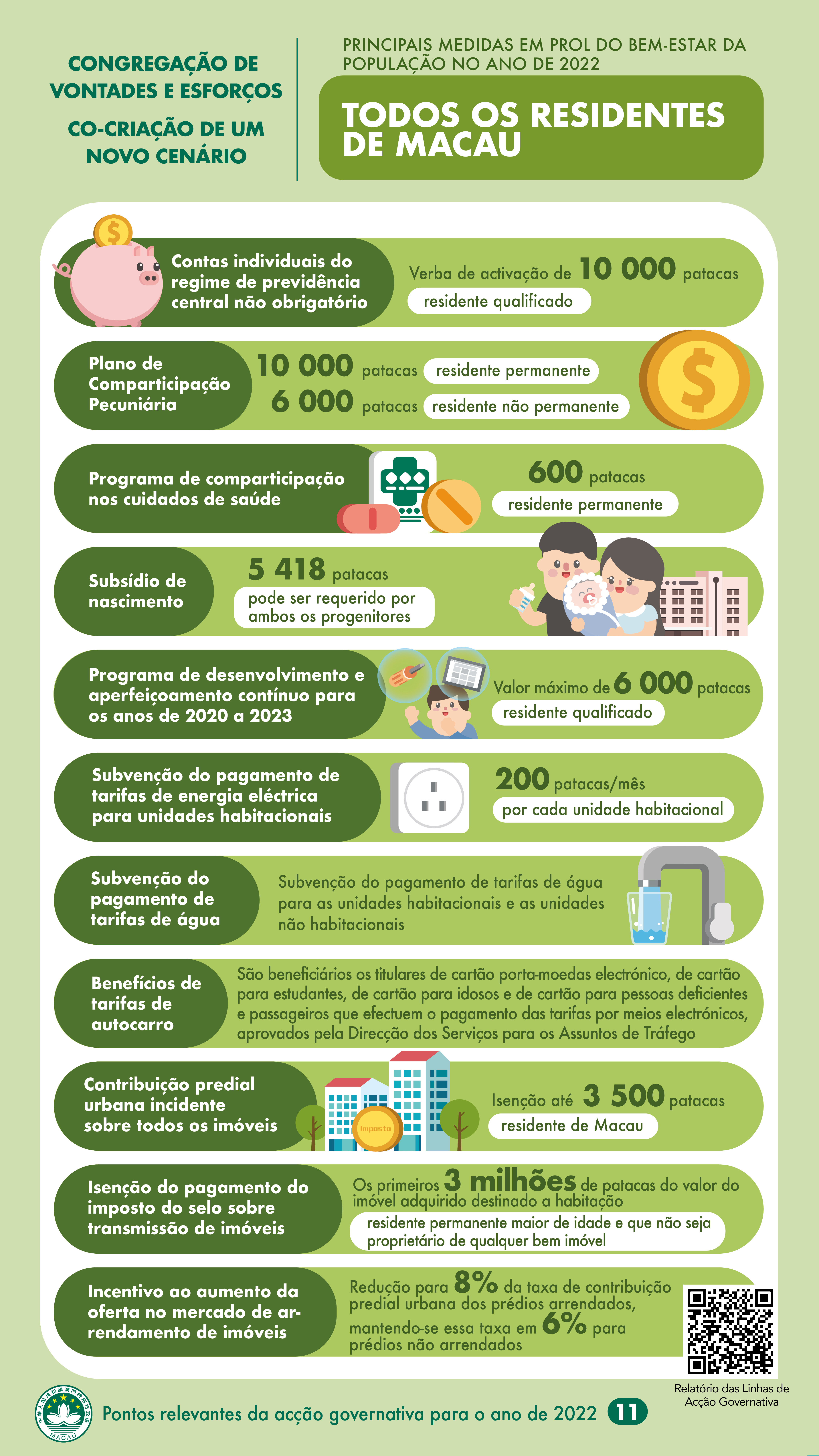 • Principais medidas em prol do bem-estar da população no ano de 2022 : Todos os residentes de Macau