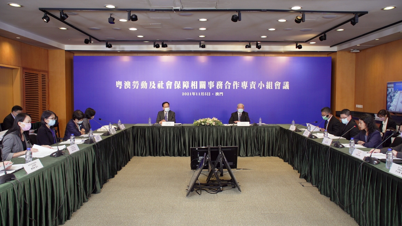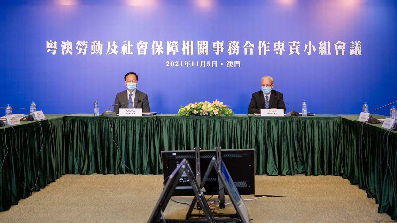 A reunião de trabalho do ano 2021 do “Grupo de especialistas em assuntos do trabalho e segurança social de Macau e Guangdong” (doravante designada por Grupo) foi realizada online há uns dias (5 de Novembro). Os representantes da Direcção dos Serviços para os Assuntos Laborais (DSAL), do Fundo de Segurança Social (FSS), da Direcção dos Serviços de Economia e Desenvolvimento Tecnológico (DSEDT) e o Departamento de Recursos Humanos e Segurança Social da Província de Guangdong fizeram o intercâmbio de assuntos relativos à avaliação técnica, emprego e empreendedorismo, fiscalização do trabalho e segurança social. Nesta ocasião, Macau e Guangdong assinaram três protocolos para aprofundar a cooperação entre ambos.