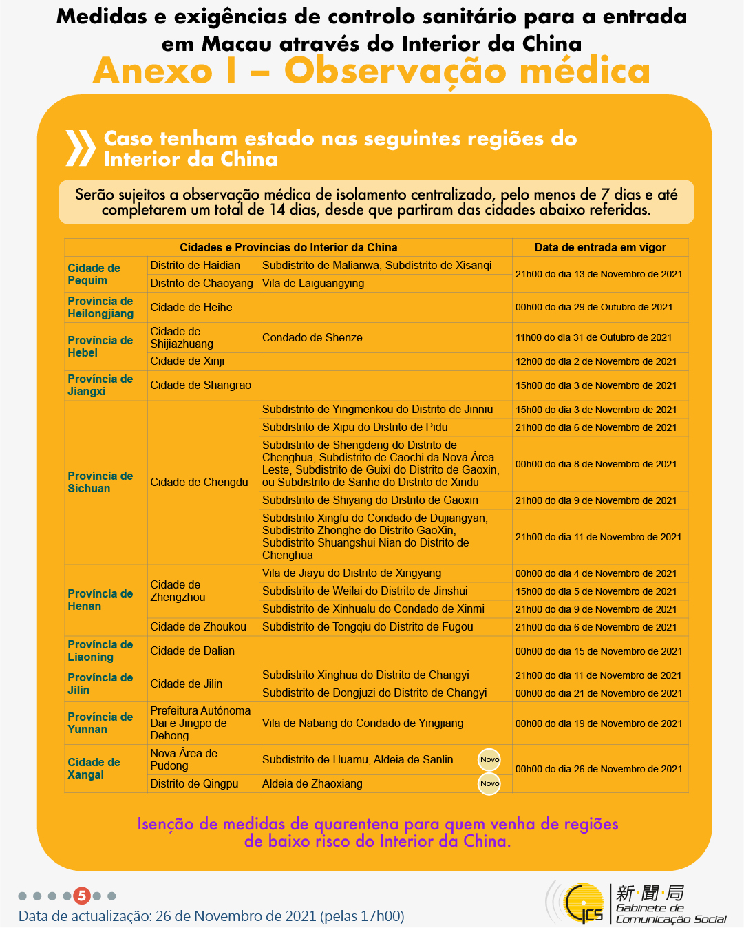 (Infografia)Medidas e exigências de controlo sanitário para a entrada em Macau de indivíduos de diferentes identidades, actualizadas no dia 26 de Novembro de 2021