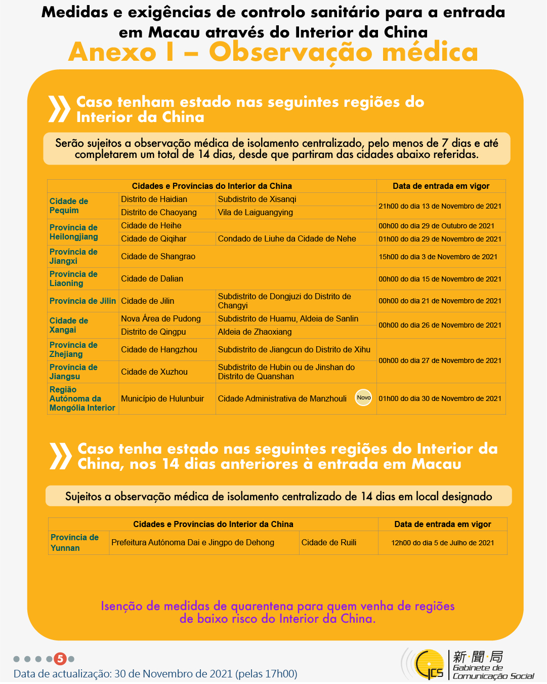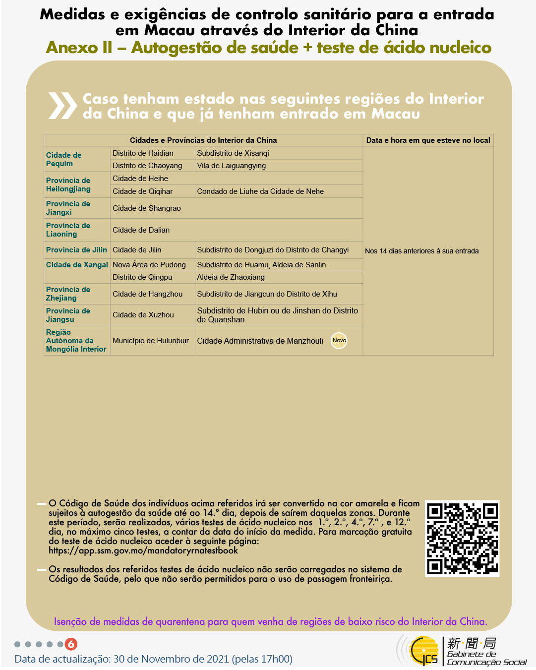 (Infografia)Medidas e exigências de controlo sanitário para a entrada em Macau de indivíduos de diferentes identidades, actualizadas no dia 30 de Novembro de 2021