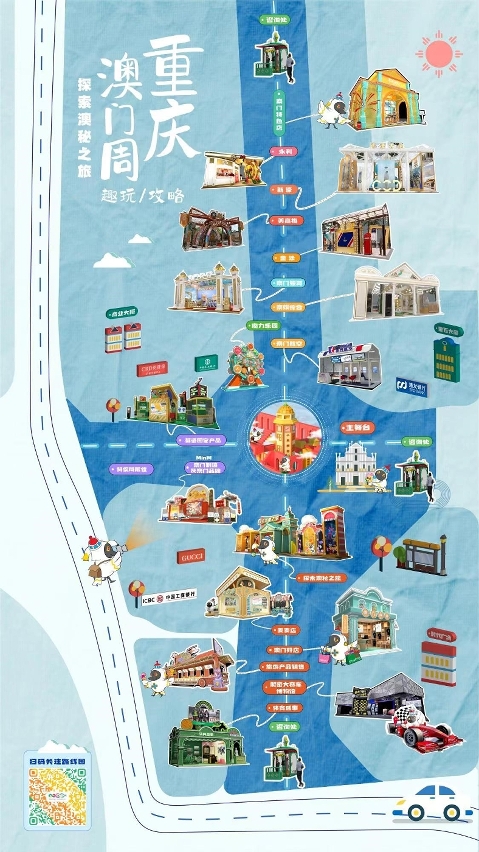 Por outro lado, nas paredes exteriores do Edifício Comercial, do Centro Financeiro Falcão Dourado e do Centro Comercial de Chongqing, localizados na praça de Jiefangbei, há publicidade com elementos de “turismo +”, enquanto que o Centro Financeiro Mundial de Chongqing dispõe de uma cortina de luz a divulgar o tema “Macau cidade apelativa, segura e apropriada para visitar”.