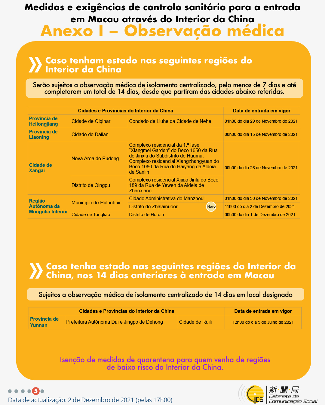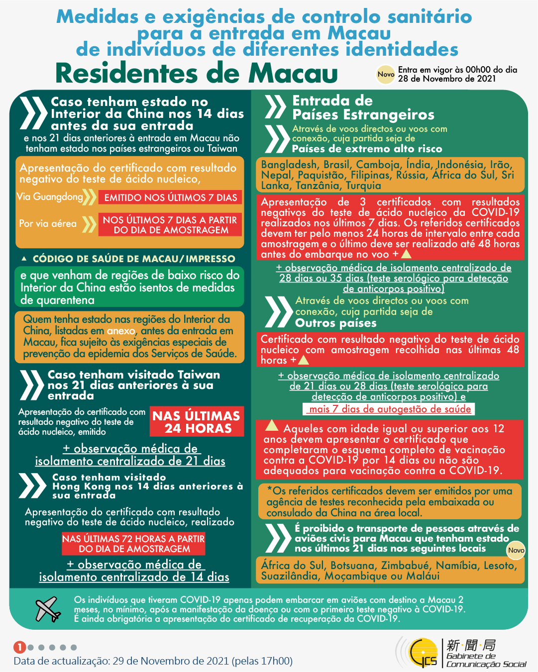 (Infografia)Medidas e exigências de controlo sanitário para a entrada em Macau de indivíduos de diferentes identidades, actualizadas no dia 2 de Dezembro de 2021