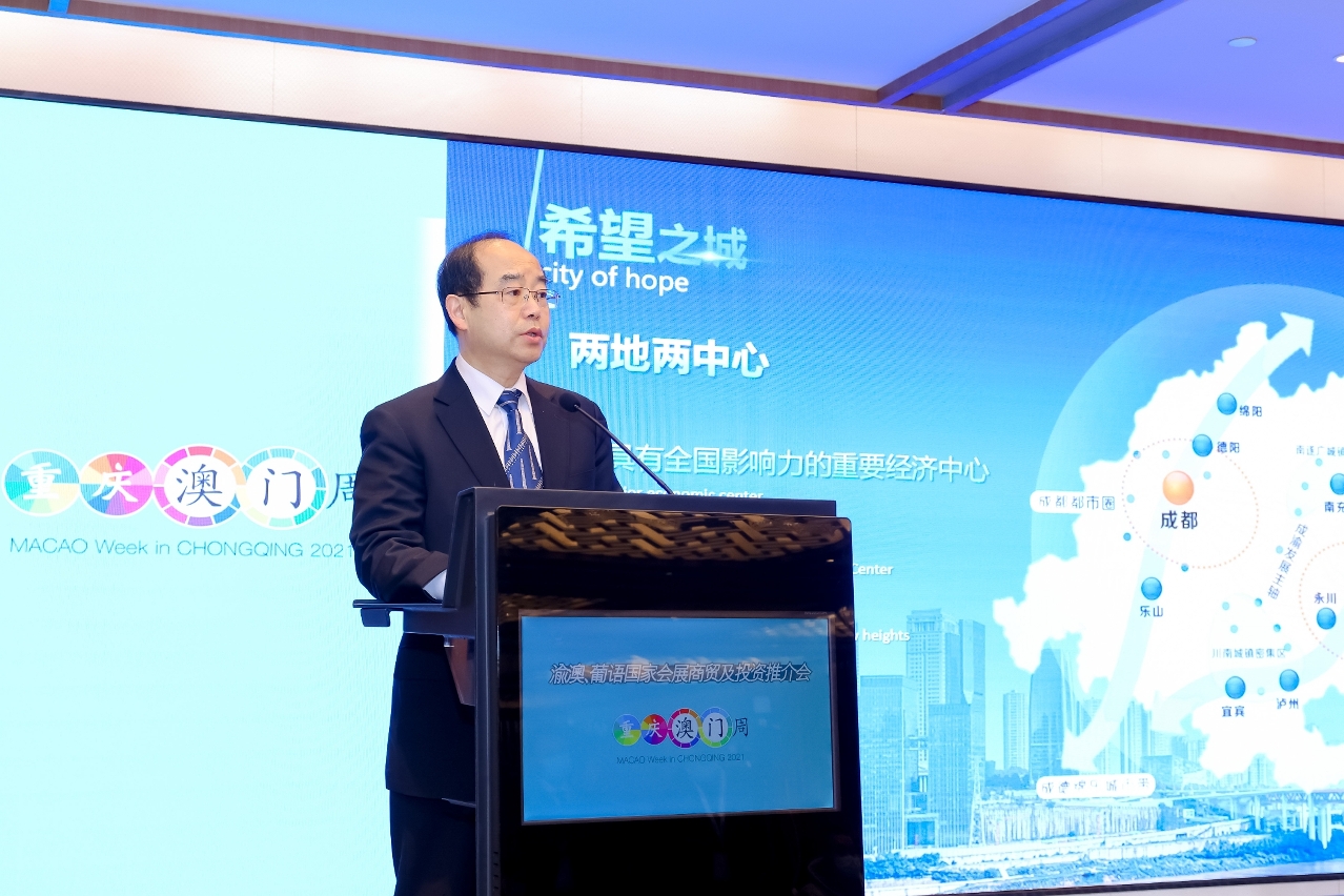O Subdirector da Comissão do Comércio do Município de Chongqing, Dr. Song Gang, referiu no seu discurso que o Município de Chongqing irá aproveitar, da melhor forma, as vantagens de Macau enquanto plataforma de serviços comerciais entre a China e os Países de Língua Portuguesa, reforçando, através de Macau, a ligação com a Grande Baía Guangdong-Hong Kong-Macau, Em articulação com a construção urbana de Chongqing como Centro Internacional de Consumo e a implementação dos seus projectos-piloto integrados de liberalização do sector de serviços, será promovida a cooperação entre Chongqing e Macau nas áreas de infra-estruturas, finanças, medicina tradicional chinesa, turismo cultural, comércio, apoio empresarial, etc., visando a exploração conjunta do mercado, a construção conjunta da plataforma e a partilha dos resultados da abertura, impulsionando a cooperação mais estreita entre Chongqing e Macau para um novo patamar.