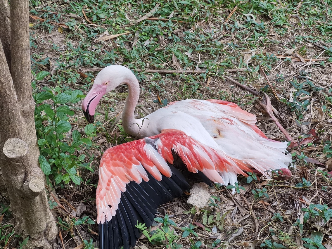 Ontem, por volta das 7h30, quando os trabalhadores de segurança do IAM procediam à patrulha regular da zona de criação de flamingos no Parque de Seac Pai Van, descobriram três cães vadios que haviam invadido o viveiro e atacado os flamingos, pelo que os trabalhadores de segurança intervieram imediatamente. Os três cães vadios fugiram sem deixar rasto. Quando os criadores chegaram ao local, após terem tomado conhecimento do sucedido, descobriram que tinham sido atacados sete flamingos, cinco dos quais morreram imediatamente, tendo os outros dois sofrido, nas costas e nas asas, mordeduras profundas, até aos ossos, que resultaram em graves ferimentos. Após socorro médico veterinário, um destes flamingos morreu esta manhã, enquanto o outro ainda se encontra em estado crítico. Os restantes 11 flamingos na área de criação não ficaram feridos.