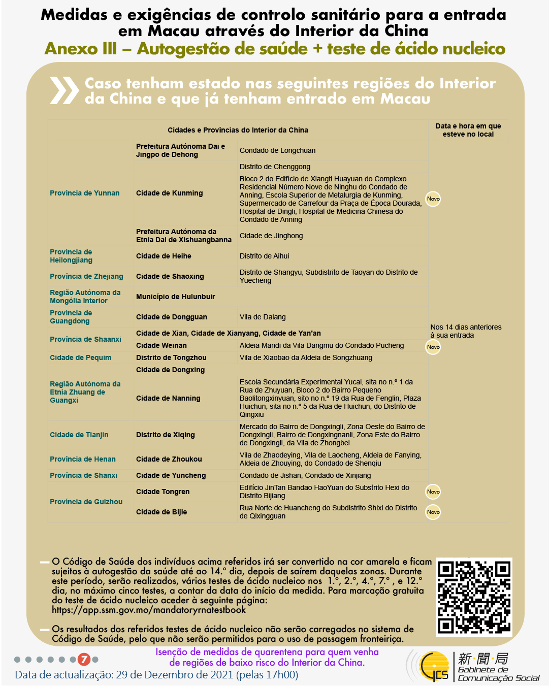 (Infografia)Medidas e exigências de controlo sanitário para a entrada em Macau de indivíduos de diferentes identidades, actualizadas no dia 29 de Dezembro de 2021