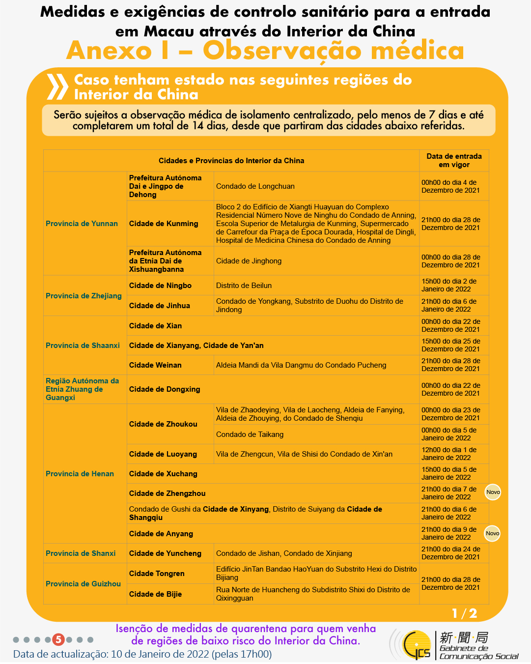 (Infografia)Medidas e exigências de controlo sanitário para a entrada em Macau de indivíduos de diferentes identidades, actualizadas no dia 10 de Janeiro de 2022