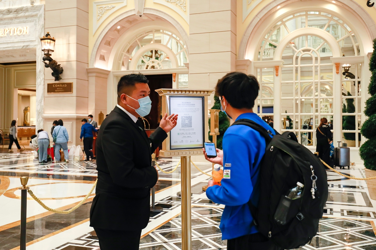 Tendo em conta as disposições dos Serviços de Saúde relativas à afixação de código de local, a Direcção dos Serviços de Turismo (DST) notificou de imediato os estabelecimentos sob a sua supervisão, incluindo estabelecimentos da indústria hoteleira, restaurantes, bares, salas de dança, estabelecimentos de saunas e de massagens, estabelecimentos de health club e karaoke, para afixarem código de local para registo do itinerário no Código de Saúde de Macau, e alertarem as pessoas para fazerem o scan ao entrar nos recintos.