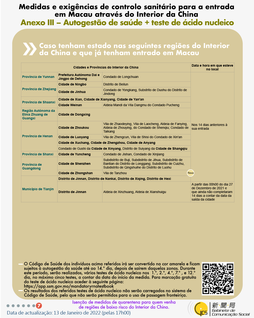 (Infografia)Medidas e exigências de controlo sanitário para a entrada em Macau de indivíduos de diferentes identidades, actualizadas no dia 13 de Janeiro de 2022