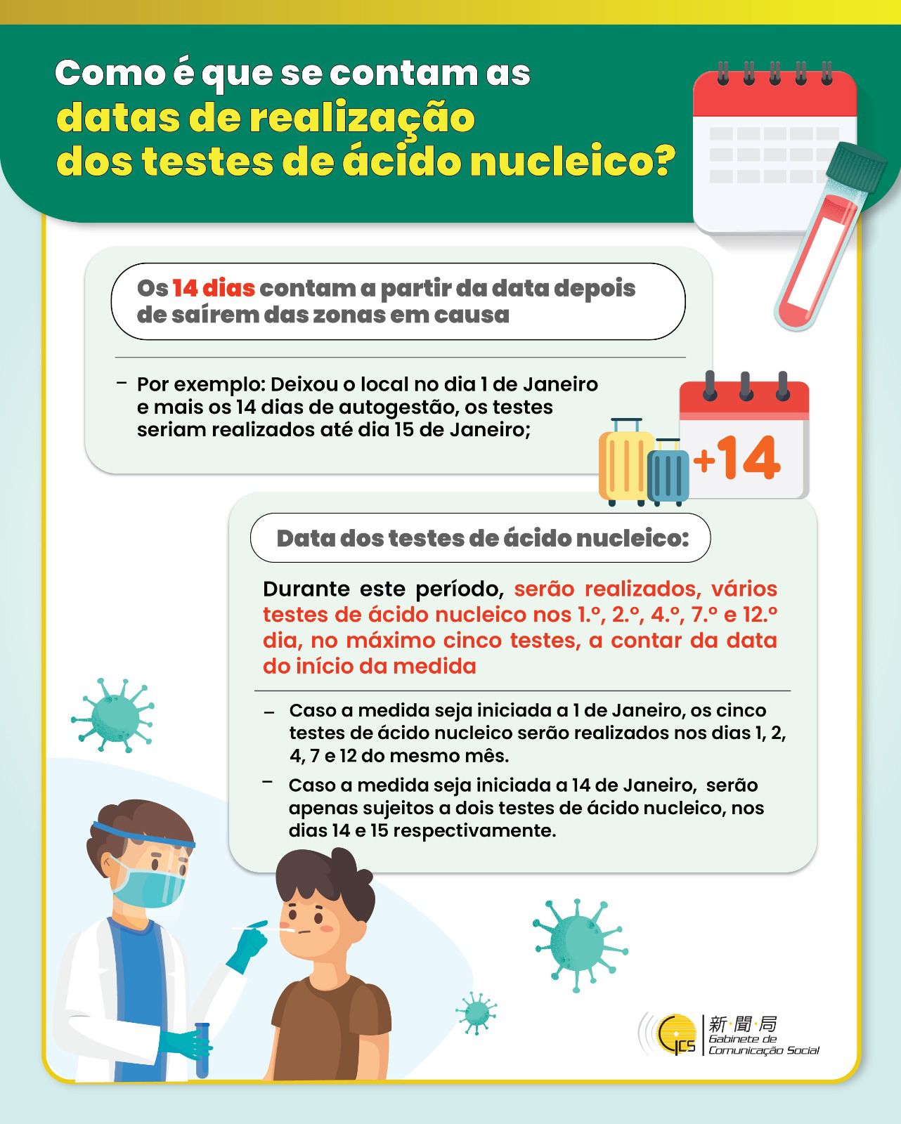 (Infografia) Como é que se contam as datas de realização dos testes de ácido nucleico?