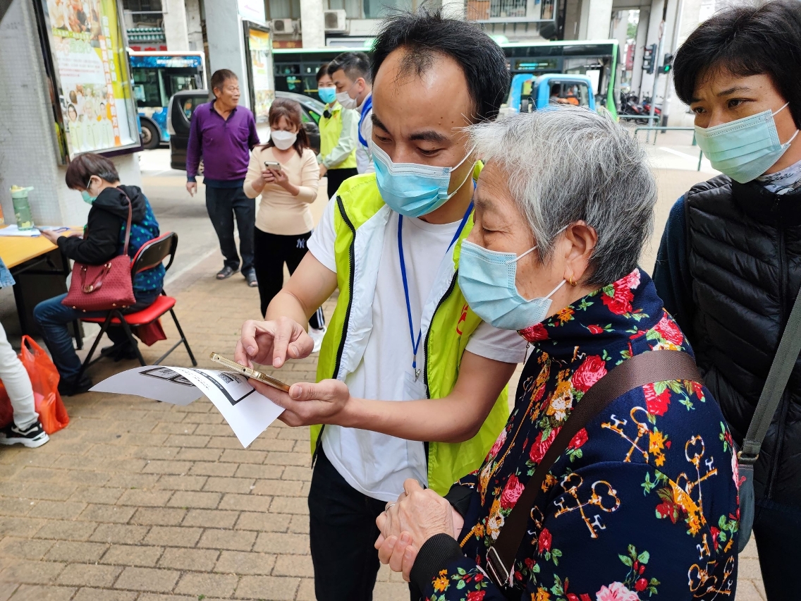 • 6. Os voluntários respondem às perguntas levantadas pelos idosos sobre a utilização da aplicação móvel “Código de Saúde de Macau”.