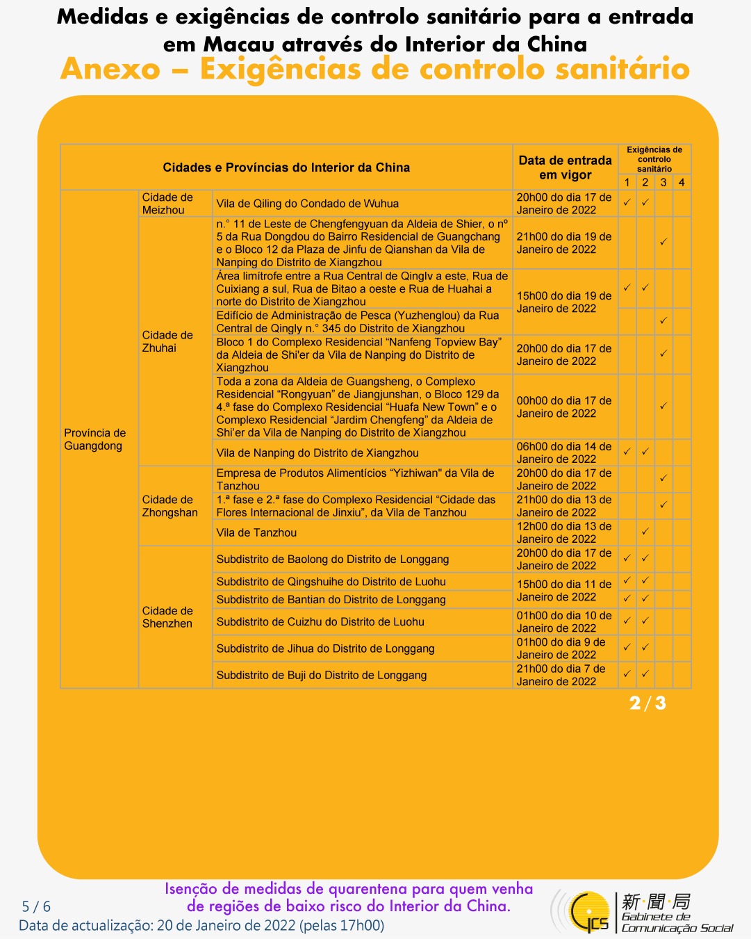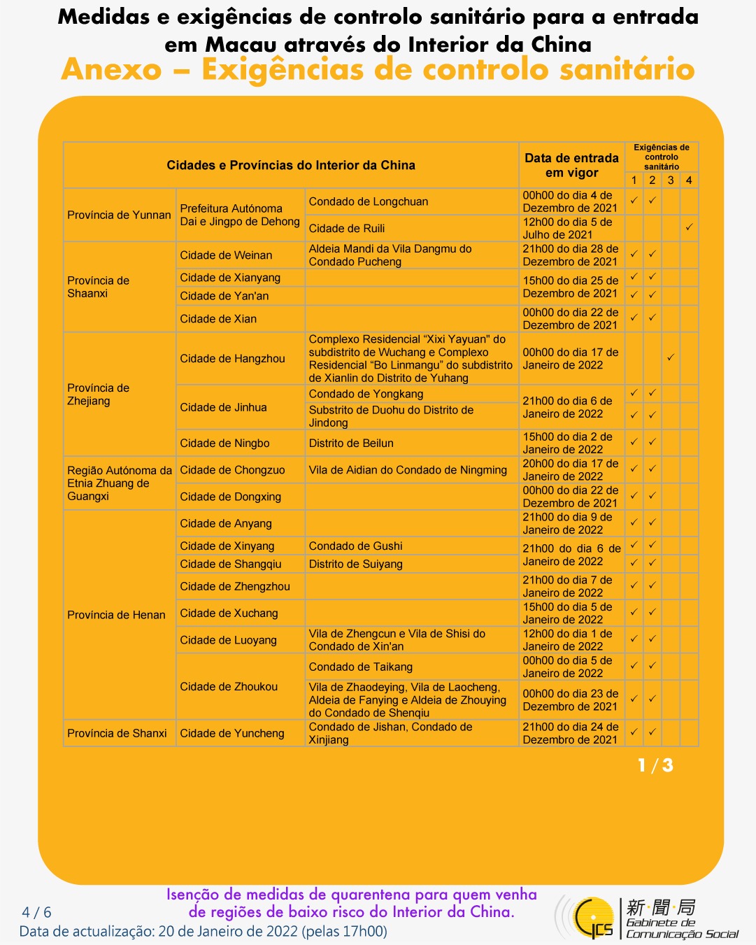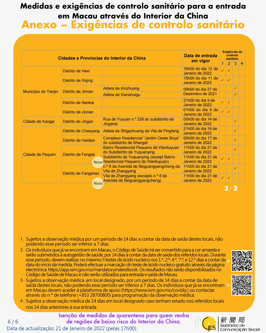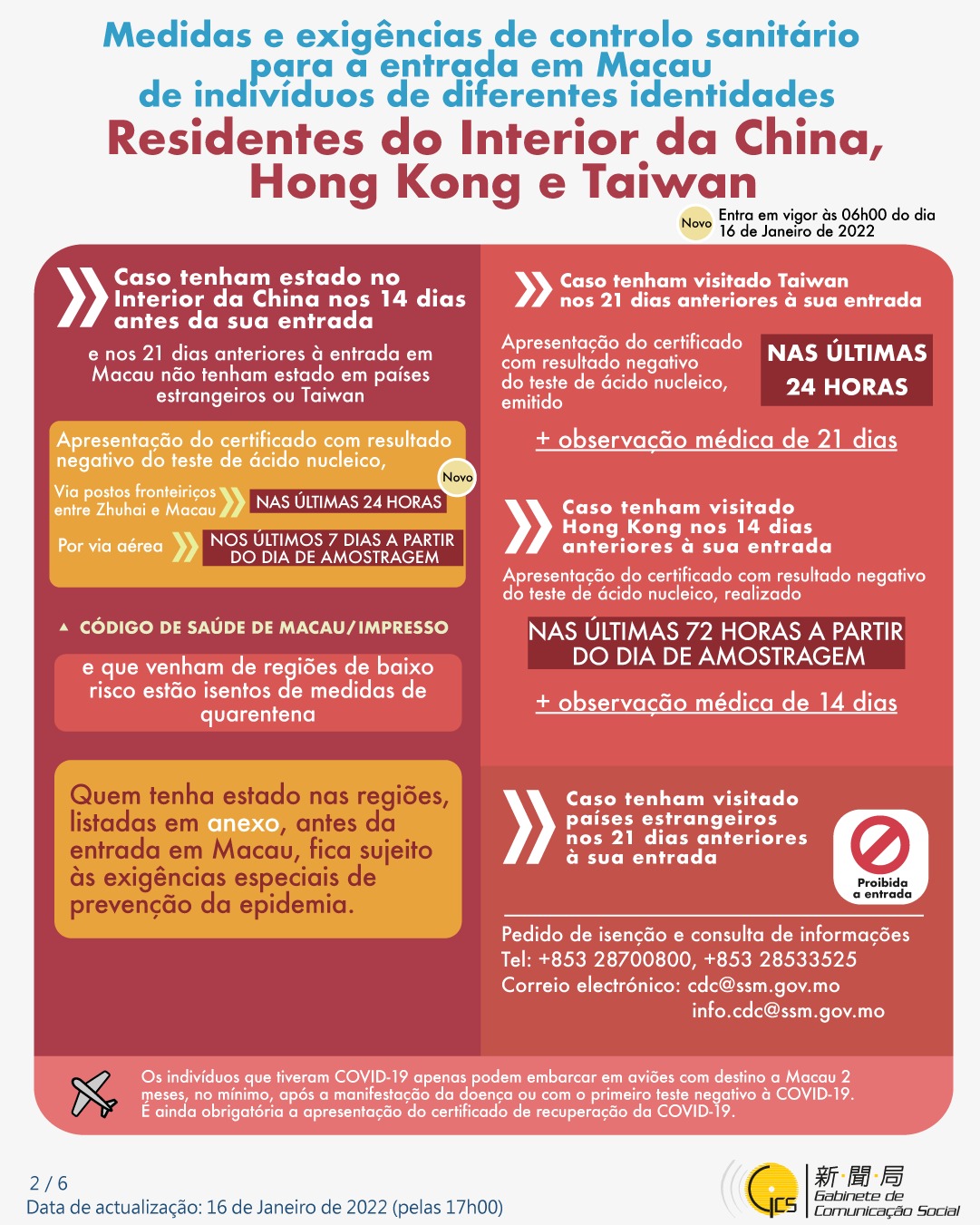 (Infografia)Medidas e exigências de controlo sanitário para a entrada em Macau de indivíduos de diferentes identidades, actualizadas no dia 21 de Janeiro de 2022