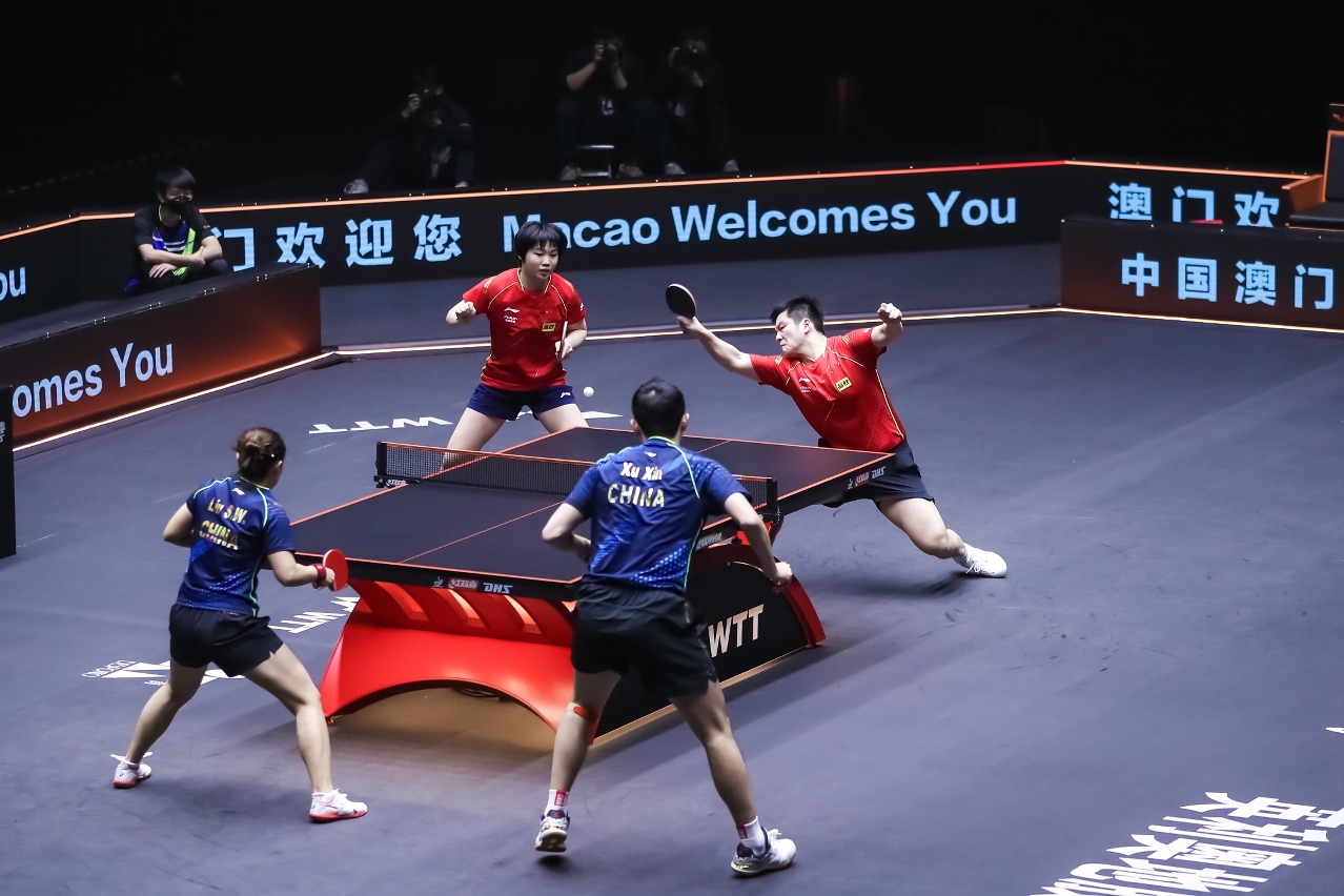 A prova final de duplas mistas, Xu Xin/Liu Shiwen contra Fan Zhendong/Kuai Man, esta manhã, as duas equipas venceram por 3-1 e 3-0, derrotaram Yu Ziyang/Chen Xingtong e Xiang Peng/Zhang Rui. Xu/ Liu venceram nos primeiros dois sets por 11:6 e no terceiro set por 11:5, conquistaram pela primeira vez o campeão em Macau.