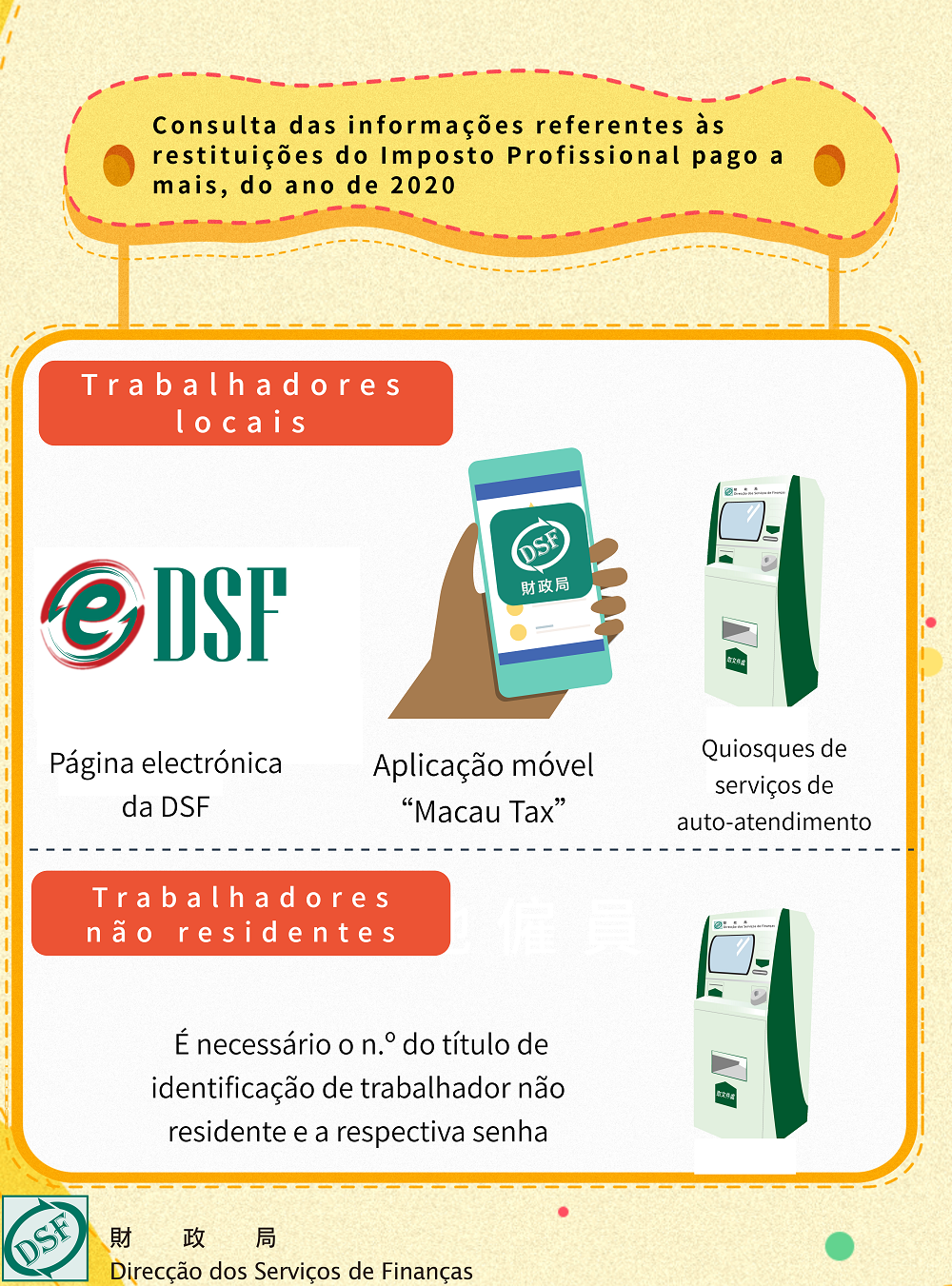 Relativamente às restituições do Imposto Profissional, pago a mais, do ano de 2020, os contribuintes podem efectuar a consulta das informações em detalhe através dos seguintes meios:
