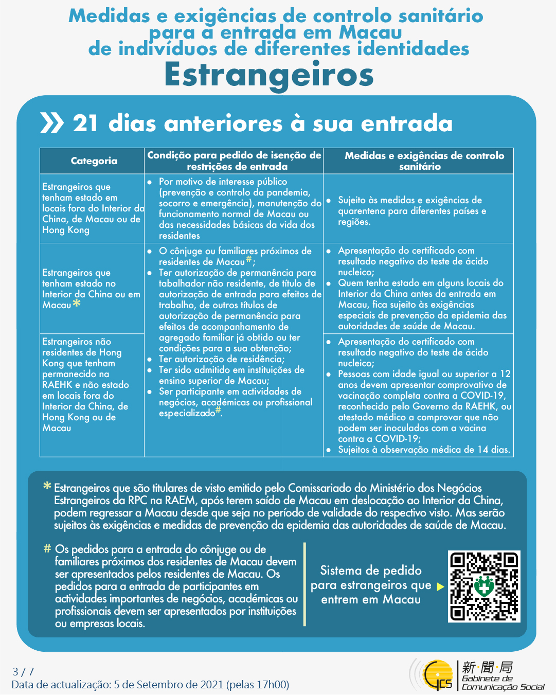 • Medidas e exigências de controlo sanitário para a entrada em Macau de indivíduos de diferentes identidades.