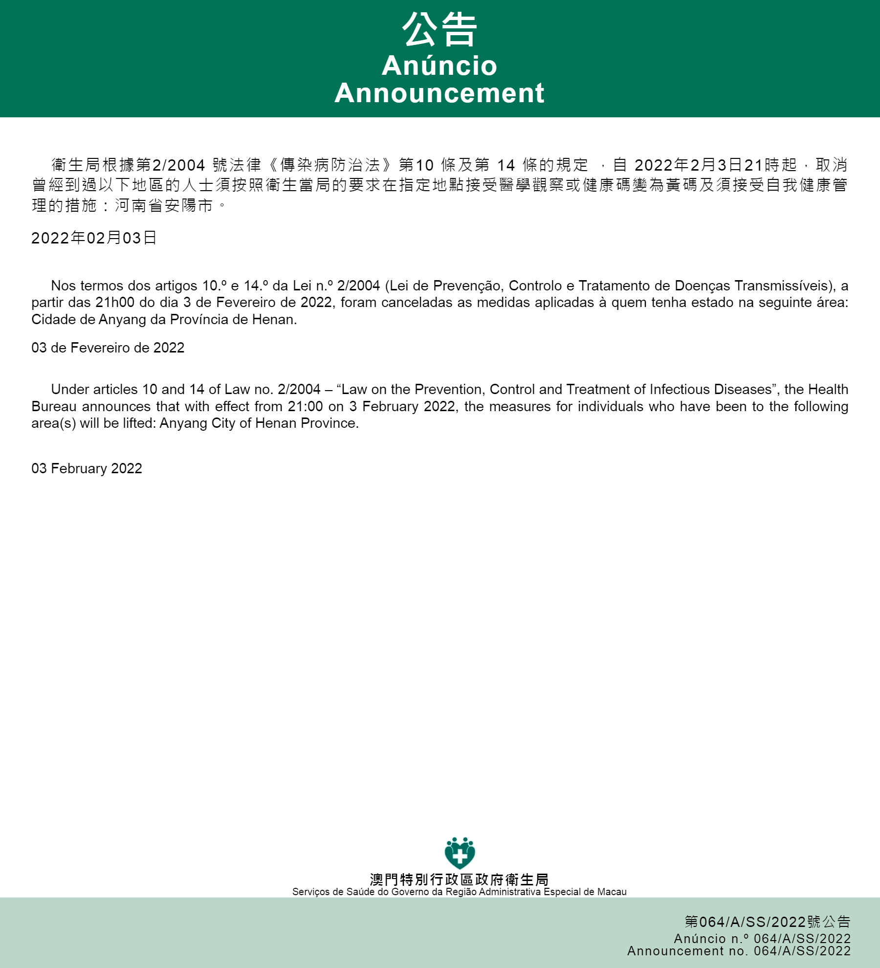 A partir das 21h00 do dia 3 de Fevereiro de 2022 |