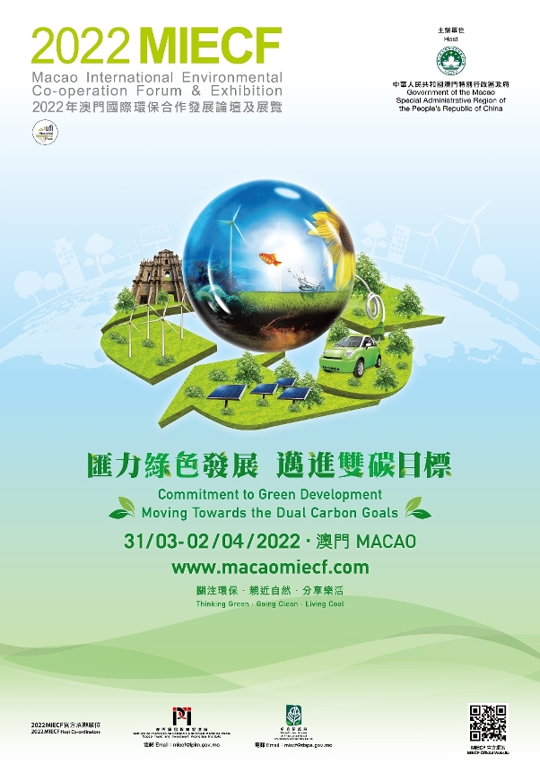 O Fórum e Exposição Internacional de Cooperação Ambiental de Macau 2022 (sigla inglesa 2022MIECF) decorrem entre 31 de Março e 2 de Abril de 2022. Esta edição, subordinada ao tema “Aposta no Desenvolvimento Verde, Rumo à Dupla Meta de Carbono” e articulada com o 14.º Plano Quinquenal do País e as metas visionárias do “pico de emissões de dióxido de carbono” e da “neutralidade de carbono”, terá vários temas em debate, tais como a neutralidade carbónica, a mobilidade ecológica e as tecnologias inovadoras, entre outros. O evento será uma combinação de acções online e de actividades presenciais, a fim de manter os especialistas, investigadores e empresários da área de protecção ambiental provenientes de todo o mundo actualizados sobre as novidades mais recentes e opiniões mais prospectivas, contribuindo para a exploração de oportunidades de negócio mais ecológicas.