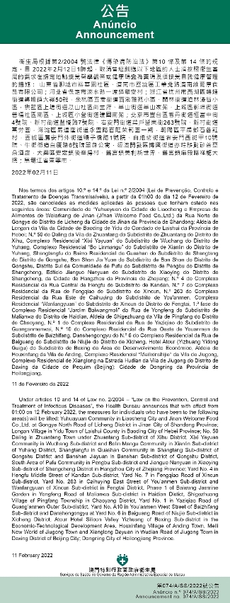Zona de gestão COVID-19 do Distrito de Panyu: Estrada Estadual N.º 105 (lado Este), Sanzhixiang Waterway (lado Sul), Ponte de Shaxi - Rua de Yingbinlu - Avenida de Panyudadao (lado Oeste), Rua de Nandalu (lado Norte) (no dia 5 de Fevereiro ou após essa data) |
