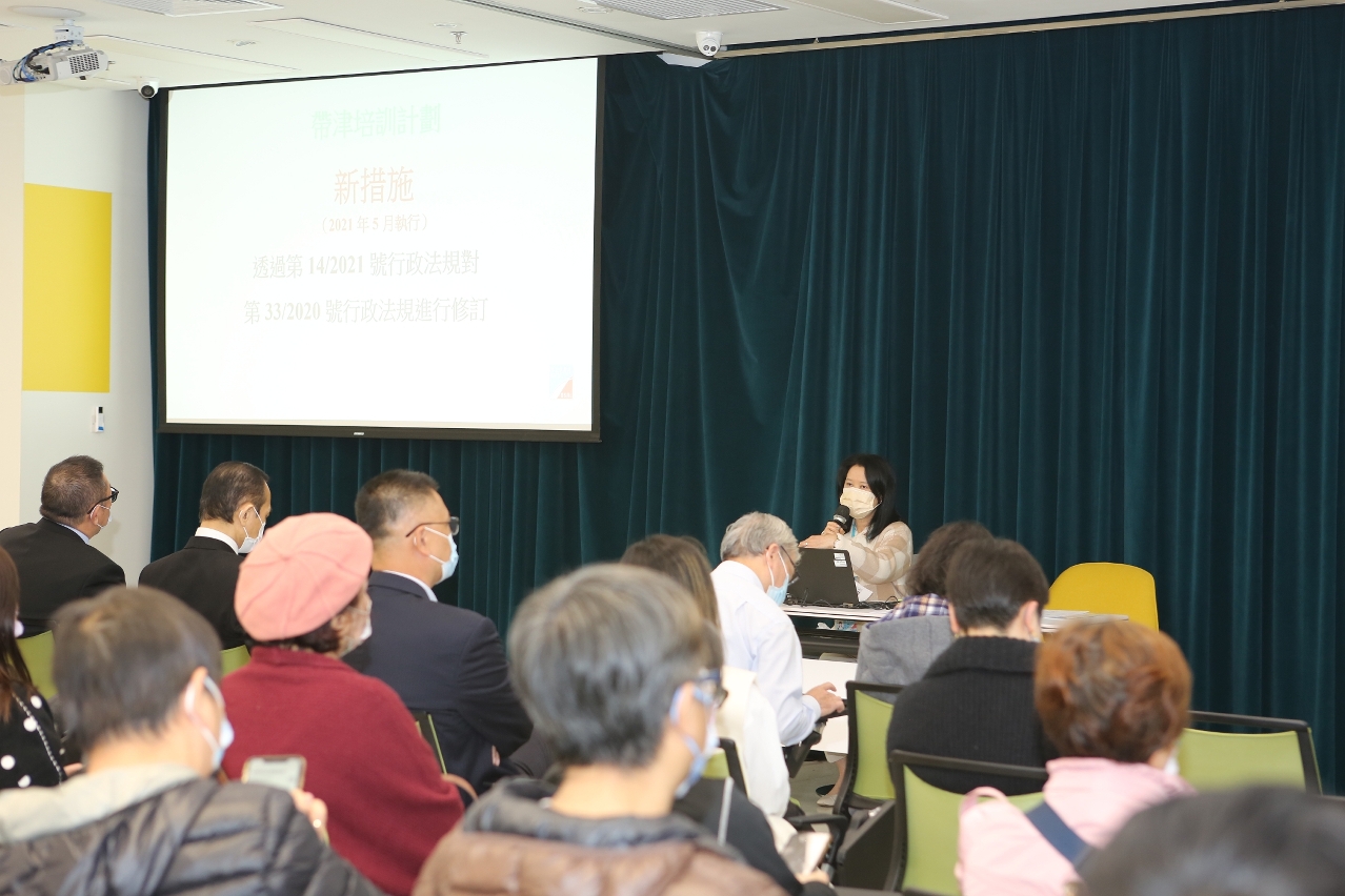 A Direcção dos Serviços para os Assuntos Laborais (DSAL) organizou há dias uma sessão de esclarecimento sobre o “Plano de formação subsidiada” para o sector hoteleiro, tendo explicado aos profissionais desse sector o objectivo do Plano, seus destinatários, programa dos cursos, procedimentos para inscrição, atribuição do subsídio, etc…