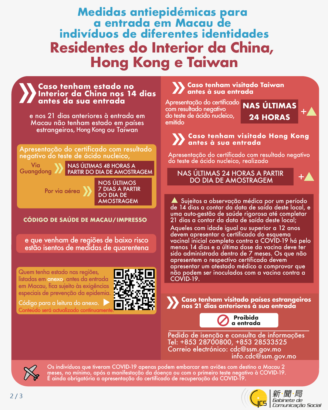 Medidas antiepidémicas para a entrada em Macau de indivíduos de diferentes identidades