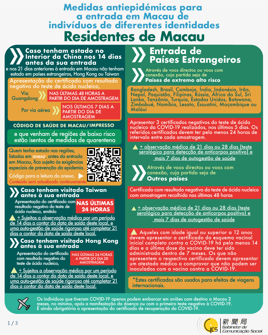 • Medidas antiepidémicas para a entrada em Macau de indivíduos de diferentes identidades