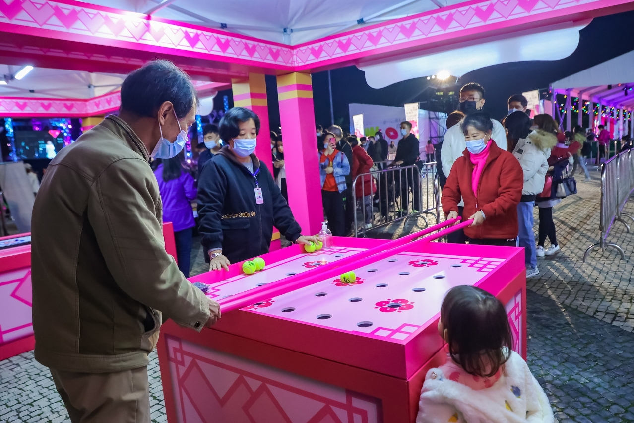 Para além das actuações no palco, o evento preparou ainda outros elementos criativos para enriquecer a experiência do público. No local, foram colocadas decorações sobre o tema do amor, despertando o interesse dos visitantes em tirar fotografias. A União das Associações dos Proprietários de Estabelecimentos de Restauração e Bebidas de Macau trouxe uma variedade de comidas e bebidas criativas e apresentou comida festiva no dia do Festival das Lanternas, deixando os visitantes mais deliciados. Foram instalados no local stands de workshops e jogos interactivos infundindo elementos culturais e criativos ao evento e atraindo a participação activa de muitos residentes, acompanhados pelos seus parceiros ou filhos. Os workshops registaram um total de mais de 500 participantes ao longo do evento. O IC agradece o apoio do Instituto do Desporto na organização deste evento que ofereceu lembranças da mascote dos Jogos Olímpicos de Inverno de 2022 em Pequim, “Bing Dwen Dwen”, atraindo a presença de uma grande quantidade de visitantes todos os dias para participarem no sorteio para ganhar esta mascote. Nesse âmbito, o evento também preparou, no seu recinto, jogos baseados na modalidade de curling, que tiveram uma forte adesão e permitiram ao público sentir a magia dos Jogos Olímpicos de Inverno.