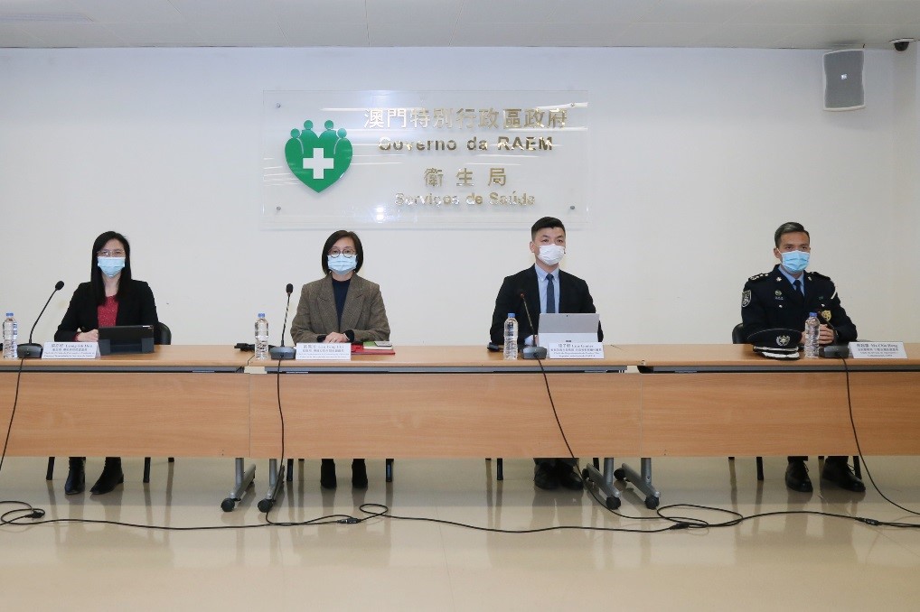 Na conferência, a Chefe de Departamento, Dr.ª Lau Fong Chi relatou o número de pessoas em observação médica em hotéis designados. O Chefe da Divisão, Dr. Ma Chio Hong relatou a situação da entrada e saída de Macau na semana passada.