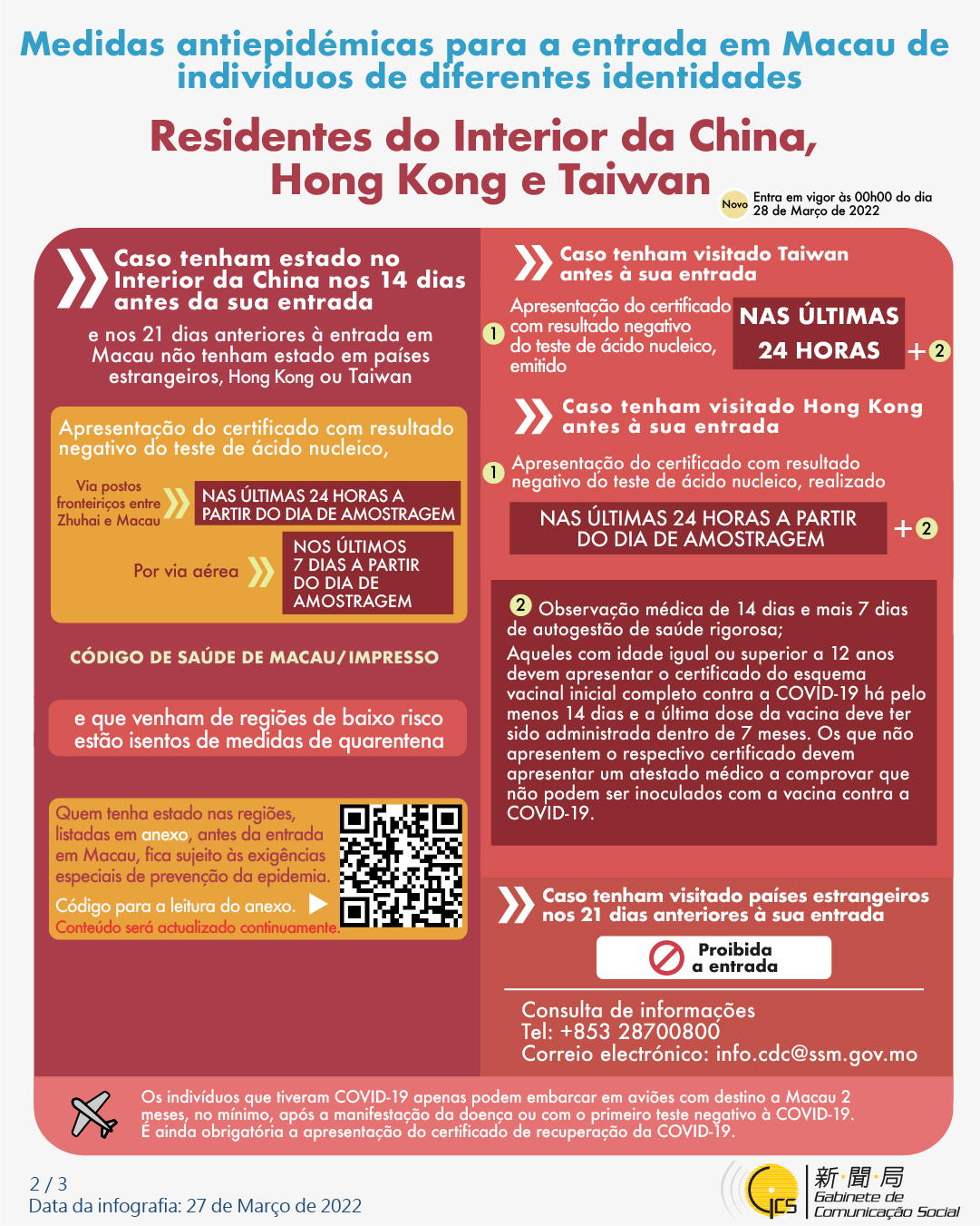 (Infografia)Medidas antiepidémicas para a entrada em Macau de indivíduos de diferentes identidades, actualizadas no dia 27 de Março de 2022
