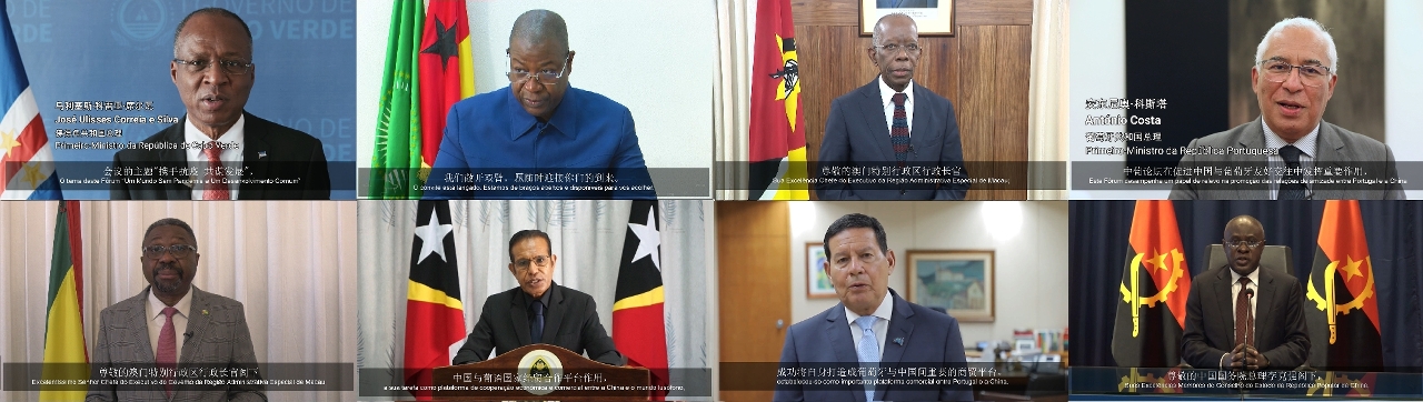 Em seguida, proferiram-se as mensagens de congratulação via vídeo de Suas Excelências os Políticos de Alto Nível dos governos dos oito Países de Língua Portuguesa, nomeadamente, pelo Primeiro-Ministro de Cabo Verde, Dr. José Ulisses Correia e Silva, pelo Primeiro-Ministro da Guiné-Bissau, Eng. Nuno Gomes Nabiam, pelo Primeiro-Ministro de Moçambique, Dr. Adriano Afonso Maleiane, pelo Primeiro-Ministro de Portugal, Dr. António Costa, pelo Primeiro-Ministro de São Tomé e Príncipe, Dr. Jorge Lopes Bom Jesus, pelo Primeiro-Ministro de Timor-Leste, Dr. Taur Matan Ruak, pelo Vice-Presidente do Brasil, General Antônio Hamilton Martins Mourão, pelo Ministro de Estado para a Coordenação Económica de Angola, Dr. Manuel Nunes Júnior. Os Dirigentes de Alto Nível enalteceram o apreço forte sobre o importante papel desempenhado e os significativos resultados conseguidos pelo Fórum de Macau, aduziram recomendações e sugestões construtivas e valiosas sobre o desenvolvimento do Fórum, atribuindo alta expectativa à continuidade do reforço da cooperação económica e comercial entre a China e os Países de Língua Portuguesa, nos mais variados sectores, sob o enquadramento do Fórum de Macau.