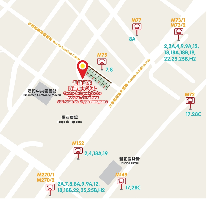 Desde a sua abertura em 2016, o Centro de Exposição dos Produtos Alimentares dos Países de Língua Portuguesa tem vindo a envidar esforços na promoção de produtos dos países de língua portuguesa e, a partir de Novembro de 2020, passou a integrar uma zona de exposição de produtos característicos de Macau. O Centro de Exposição localiza-se na Fracção R1 do Centro Comercial da Praça do Tap Seac (Casa de vidro). Para quaisquer consultas sobre o evento, queira visitar a página oficial: https://www.ipim.gov.mo , ou contactar-nos através de(853)2836 6827.