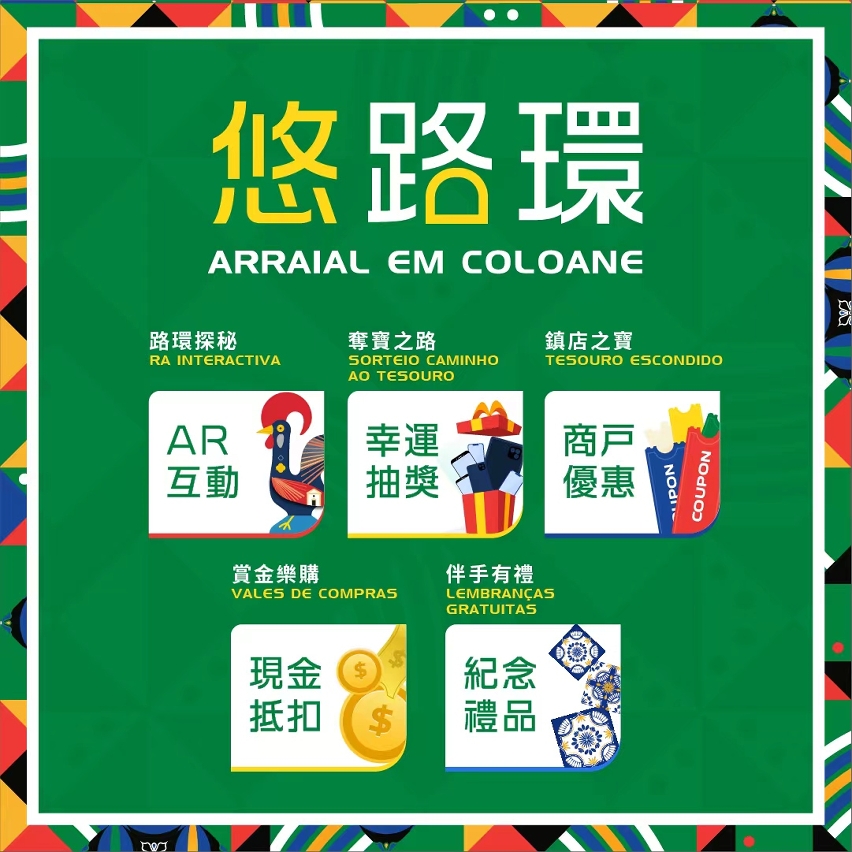 Ao mesmo tempo, o “Arraial em Coloane” contará, inicialmente, com a participação de cerca de 20 estabelecimentos comerciais. No decurso dessa actividade, os estabelecimentos aderentes disponibilizarão descontos preferenciais, conjugados com o jogo “Tesouro Escondido”, para que os consumidores possam apontar, de imediato, produtos característicos desses estabelecimentos e obter ofertas. Para além dos descontos dados por esses estabelecimentos, poderão ainda ser disponibilizados aos consumidores vales de compras, prendas com marca popular da propriedade intelectual, também oportunidades de sorteio para ganhar prémios maravilhosos, de modo a atrair a participação activa dos residentes e visitantes na interacção e incentivar o aumento do seu consumo.