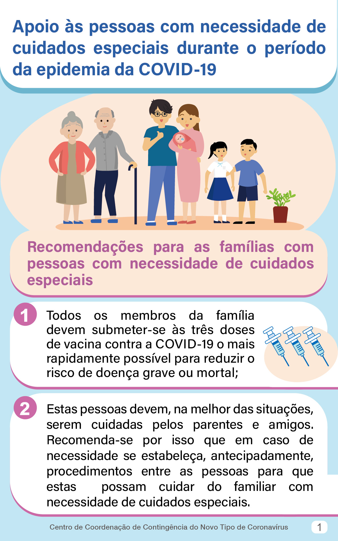 Apoio às pessoas com necessidade de cuidados especiais durante o período da epidemia da COVID-19 (infografia)