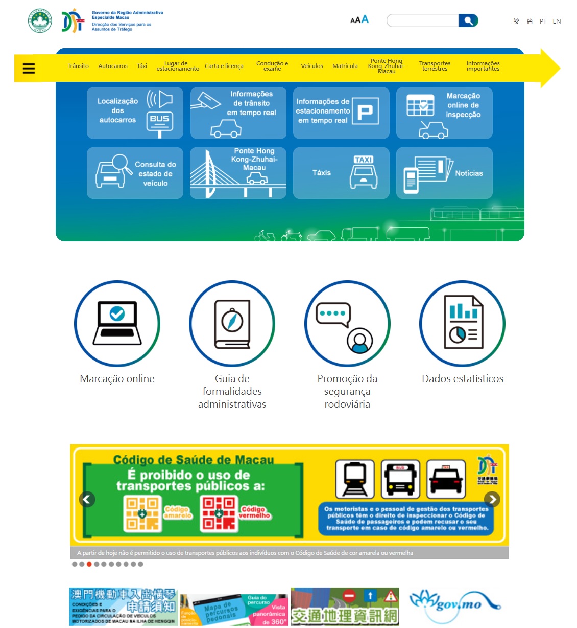 O website oficial da Direcção dos Serviços para os Assuntos de Tráfego ( www.dsat.gov.mo ) foi alvo de uma actualização e o seu lançamento acontecerá na madrugada de 13 de Maio (sexta-feira). A actualização vem aperfeiçoar a estrutura do website e introduzir o Responsive Web Design, tendo reforçado também as funções de pesquisa e partilha de informações, com vista a melhorar a experiência dos usuários.