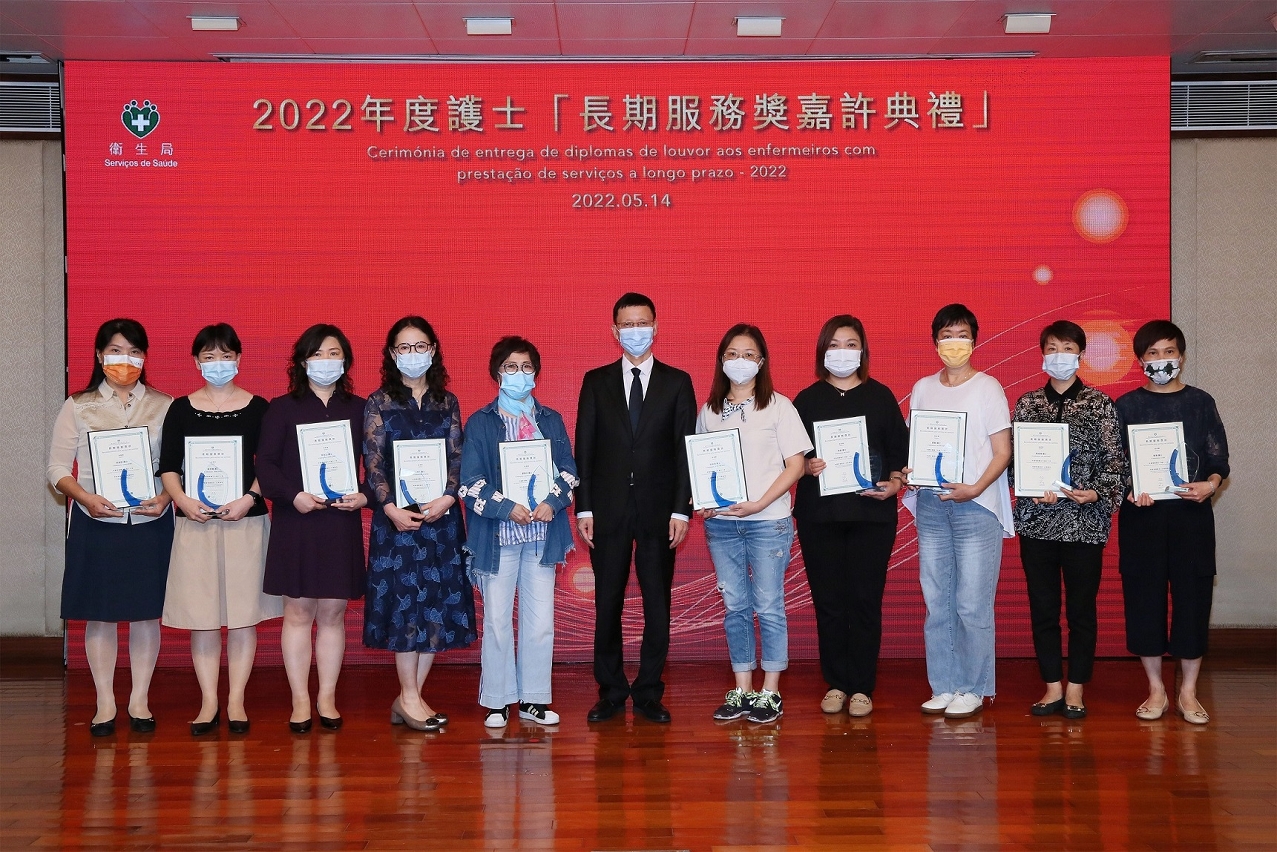 Os Serviços de Saúde realizaram sábado, 14 de Maio, por ocasião do Dia Internacional do Enfermeiro, a Cerimónia de Entrega de Diplomas de Louvor aos Enfermeiros com Prestação de Serviços a Longo Prazo a 47 enfermeiros que serviram Macau por mais de 20 anos e a 26 enfermeiros que serviram Macau por mais de 30 anos. Esta é uma forma do Governo da RAEM expressar reconhecimento e prestar homenagem.