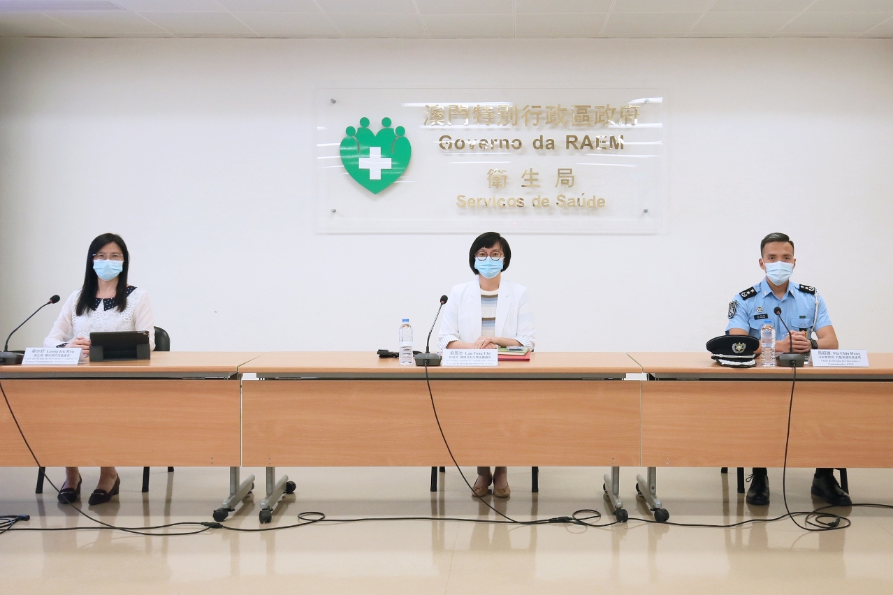 Estiveram presentes na conferência de imprensa: a Chefe do Departamento de Comunicação e Relações Externas da Direcção dos Serviços de Turismo, Dr.ª Lau Fong Chi; a Chefe da Divisão de Prevenção e Controlo de Doenças Transmissíveis do CDC dos Serviços de Saúde, Dr.ª Leong Iek Hou; o Chefe da Divisão de Operações e Comunicações do Corpo de Polícia de Segurança Pública, Dr. Ma Chio Hong.